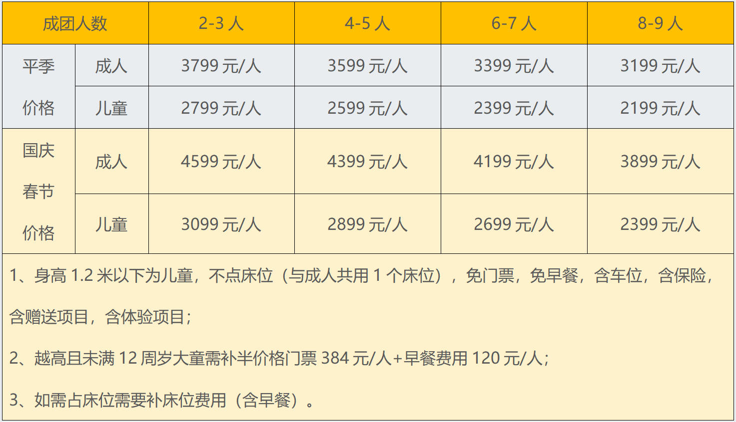 ▷越高且未满12周岁大童需补半价格门票384元/人+早餐费用120元/人;