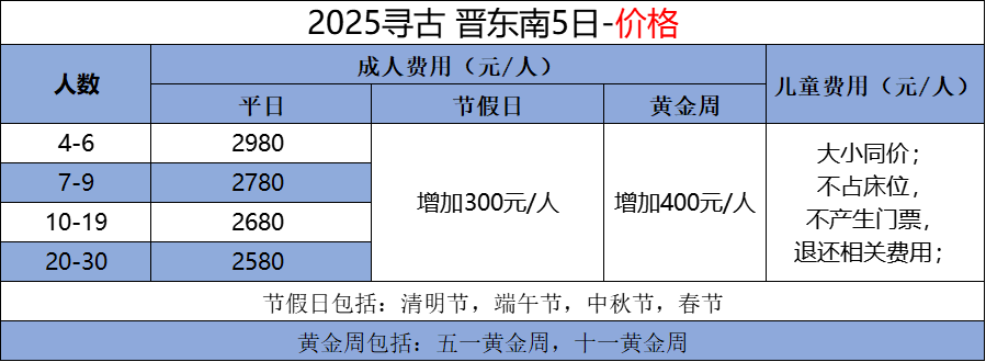 服装:山西地区早晚温差较大,请按提示备好所需衣物哦;