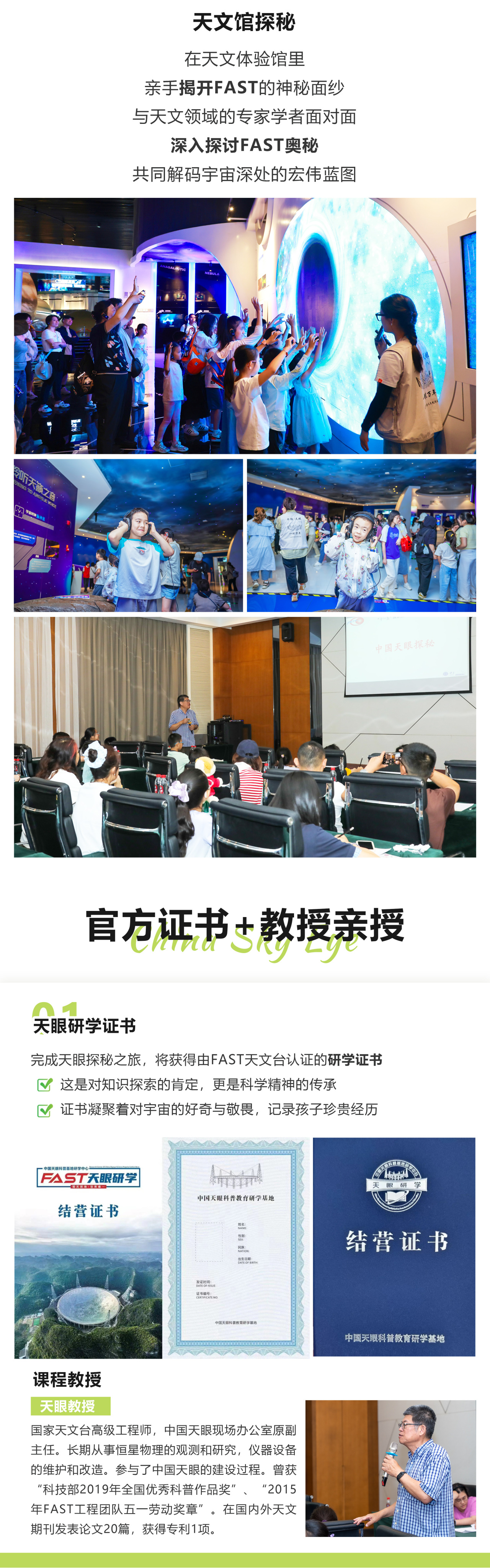 三大证书:桥梁研学证书,天文研学证书,探洞研学证书;