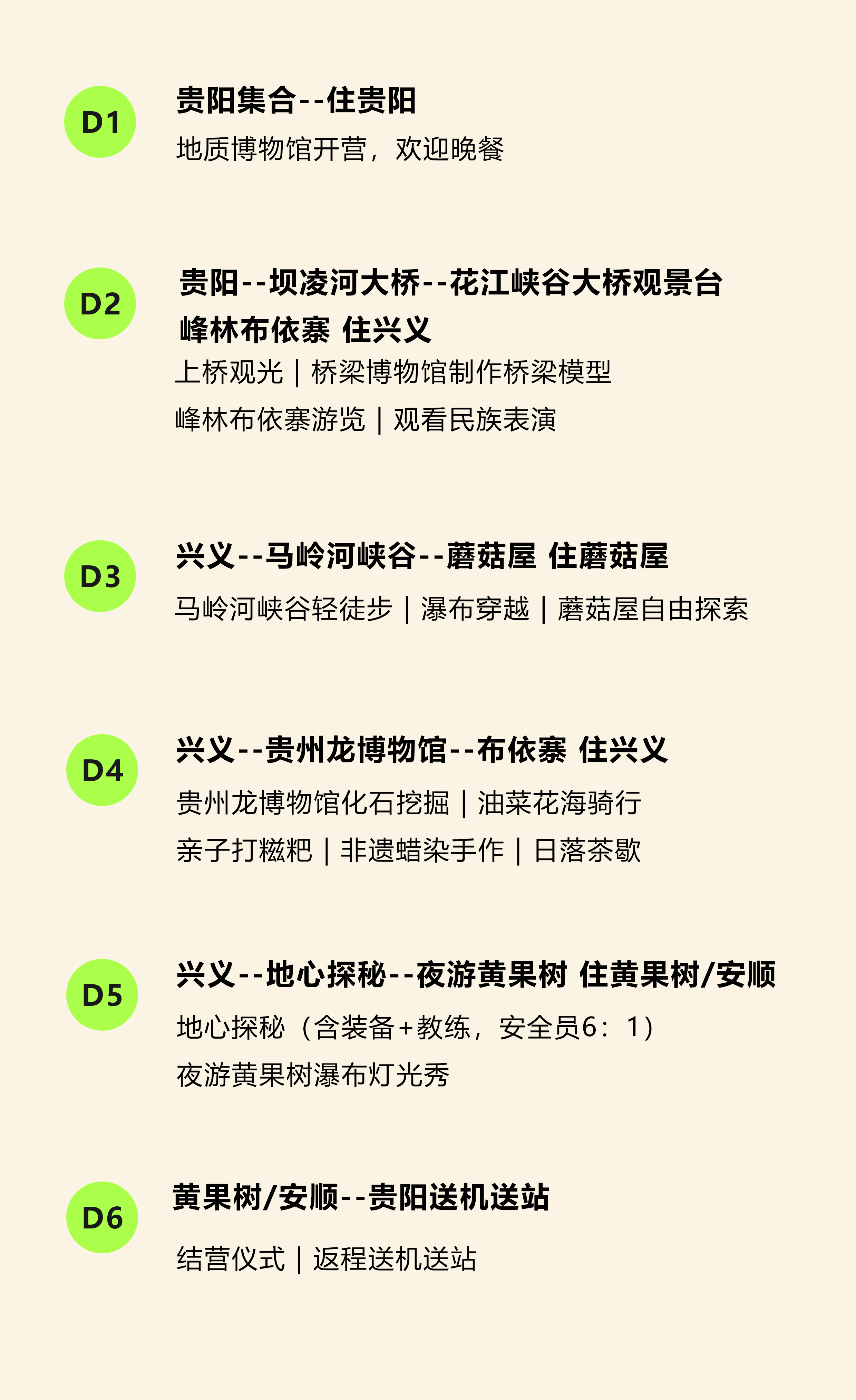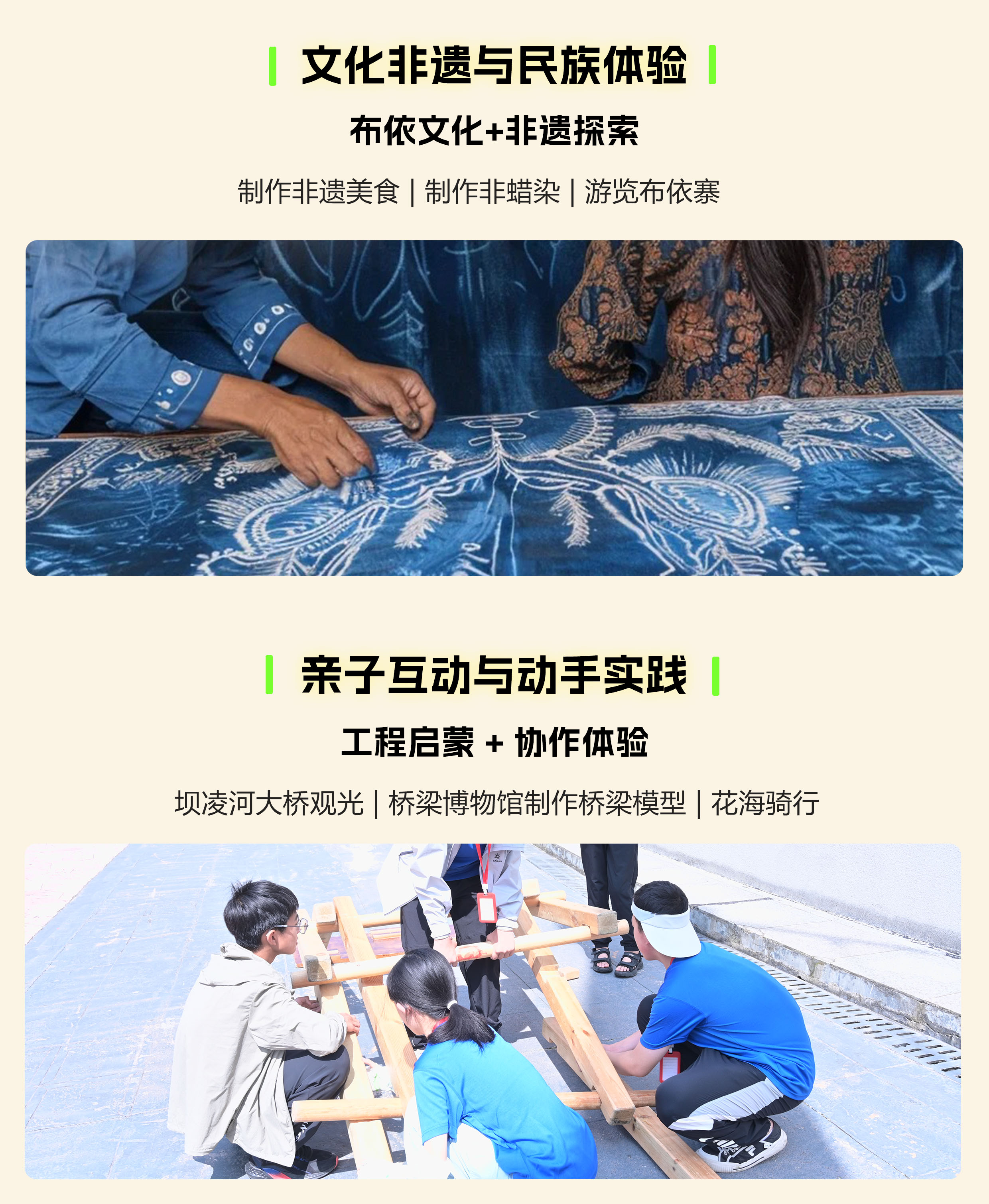 【体验】坝凌河博物馆+上桥观光+桥梁模型搭建,布依寨骑行,日落茶歇,打糍粑,蜡染,地心探秘(含装备+教练+安全员6:1),夜游黄果树瀑布灯光秀