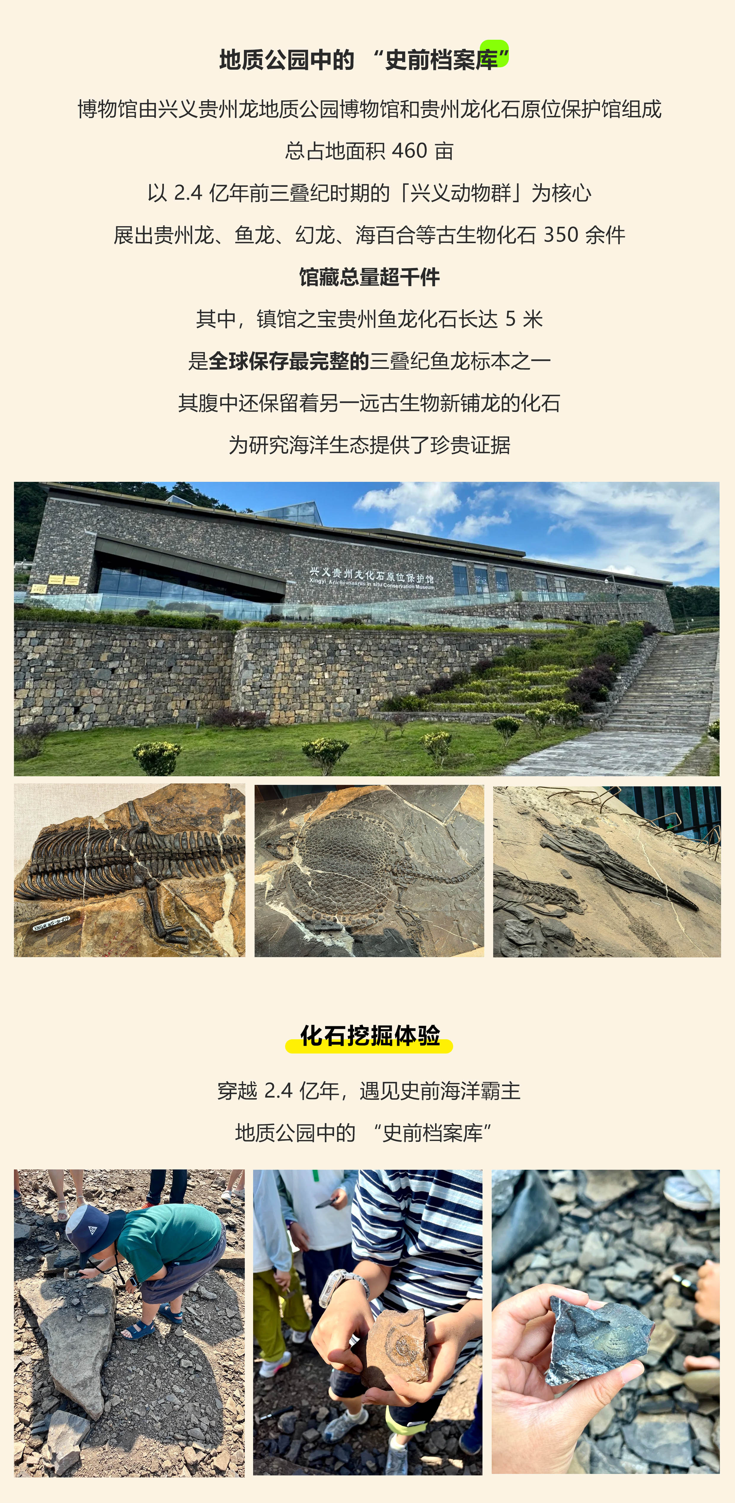 【开营仪式】设置在荣获鲁班奖贵州新地标【贵州省地质博物馆】,它的外观设计独具匠心,贵州地质博物馆的主题,也展示了贵州丰富的地质资源和独特的自然景观。一同穿越时空,寻找三叠纪恐龙生活的踪迹,同时领略贵州乃至地球的地质变迁与自然奇观。在这里亲身体验地质科学的魅力,与恐龙模型亲密互动,让学习变得生动有趣。