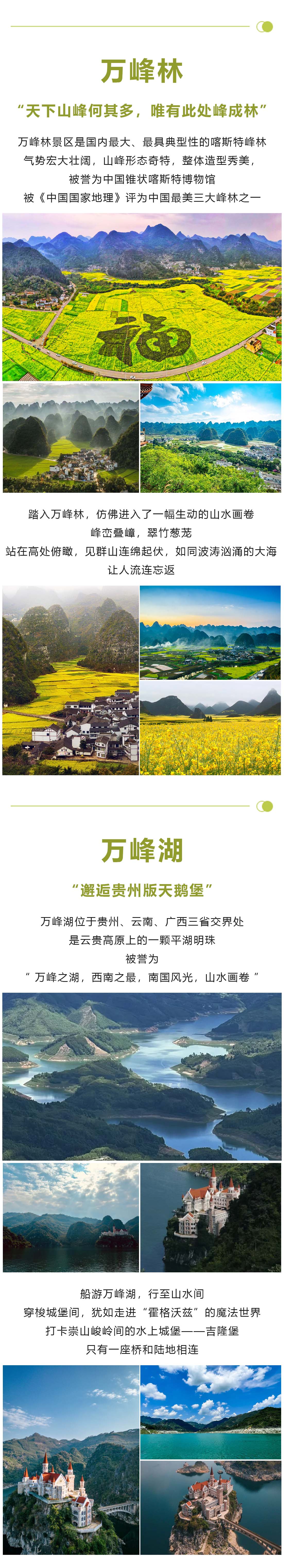 早餐后乘车前往【万峰湖】游览,万峰湖是云贵高原上的一颗平湖明珠,享有 “ 万峰之湖,西南之最,南国风光,山水画卷 ” 之美誉。乘船经过【吉隆堡】,这是一座漂浮在万峰湖碧波之上的城堡,像一颗被喀斯特群山轻捧的珍珠,又似中世纪魔法世界的遗落秘境。