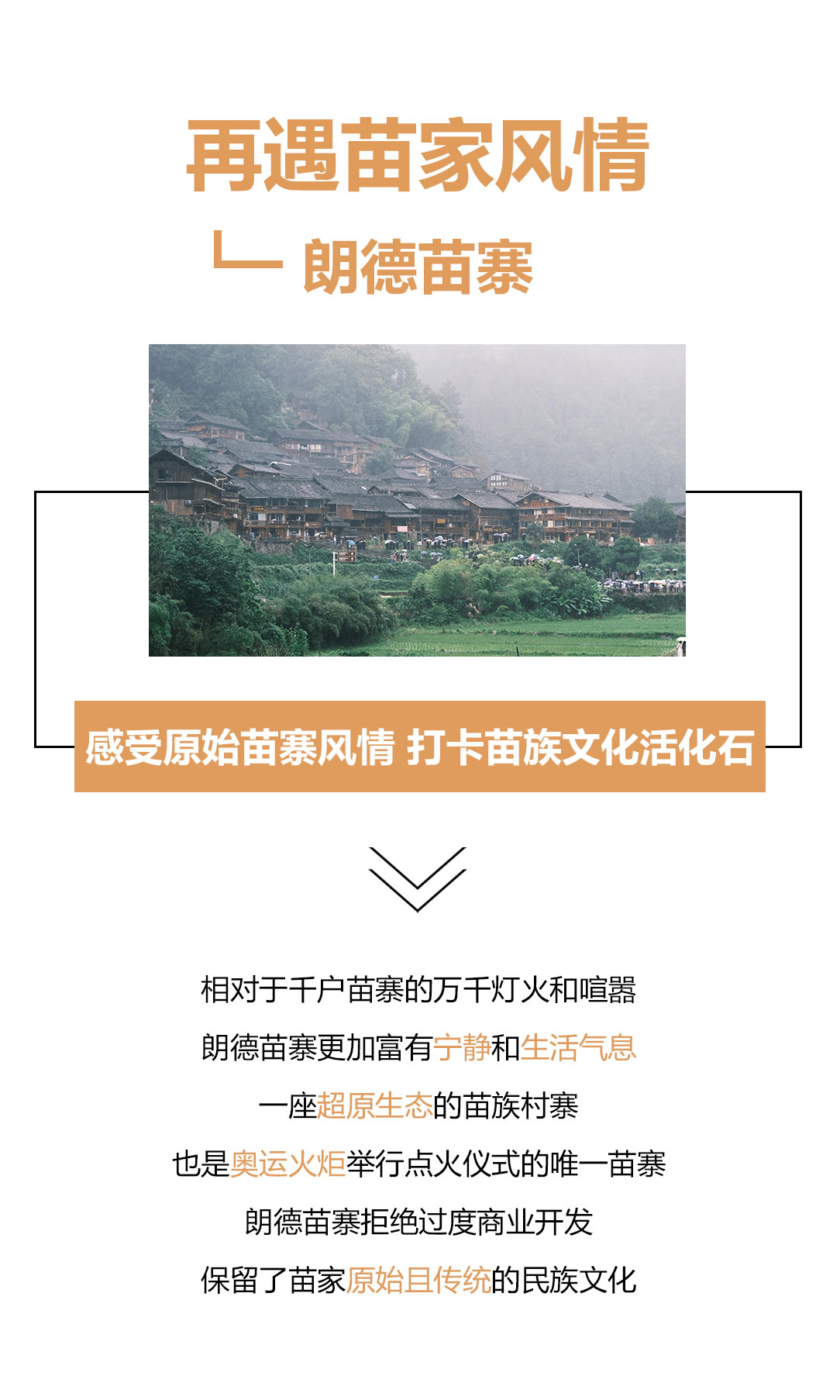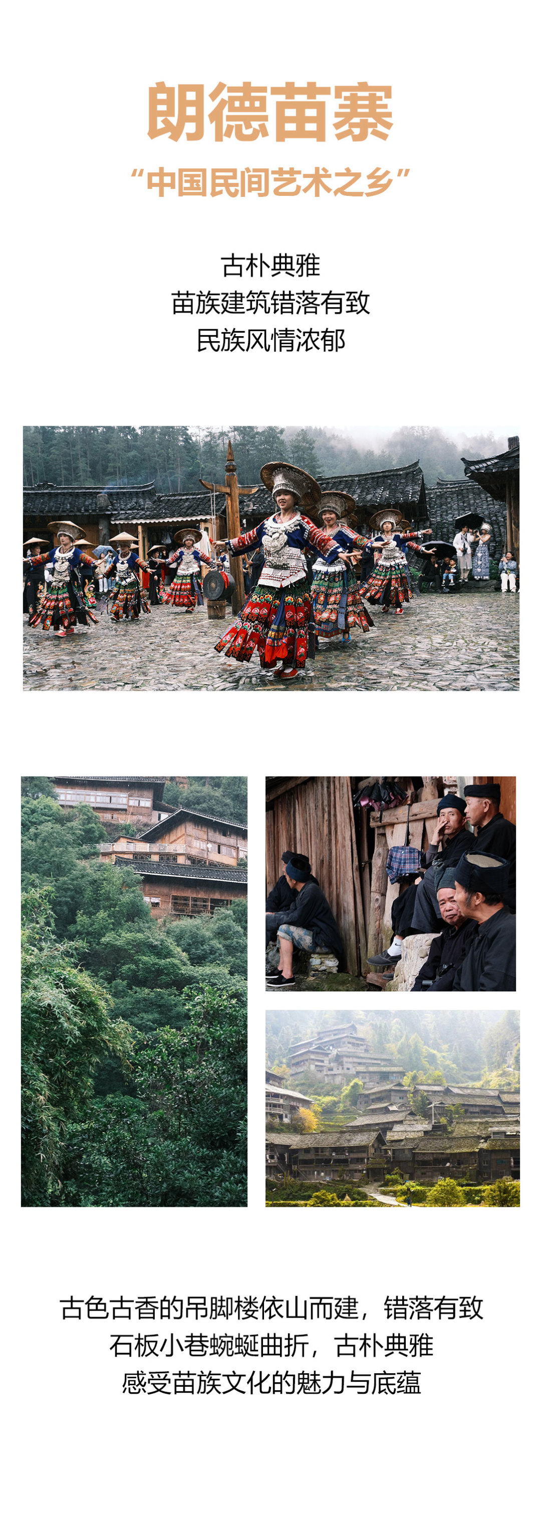 早餐后 乘车前往【朗德苗寨】,享受少数苗族传统村寨的宁静和质朴,郎德苗寨是国内最早进行旅游接待的民族村寨之一,1985年,郎德上寨作为黔东南民族风情旅游点率先对外开放;1993年载入《中国博物馆志》;1997年被国家文化部命名为“中国民间艺术之乡”;2001年被列为“全国重要文物保护单位”;2007年被中国景观村落评审委员会评为“中国景观村落”;2008年奥运圣火凯里站传递在郎德上寨铜鼓坪举行火炬传递起跑仪式;2012年入选第一批“中国传统村落”名录。相较于西江千户苗寨来说,郎德苗寨的规模要小许多,约有百户人家,村寨内的建筑大多保存完好,且保持着原生态的面貌。郎德苗寨拥有原始的苗族风情、特色鲜明的吊脚楼、魅力无穷的苗族歌舞及绚丽的苗族银饰,素有“全国百座露天博物馆”之称。这里民风淳朴,与世无争,古朴、原始、安静,是许多摄影爱好者的天堂,也是现代都市人心底无比向往的桃花源。体验苗族十二道拦门酒,感受苗族最隆重的迎宾礼节,欣赏精彩纷呈的民族表演。