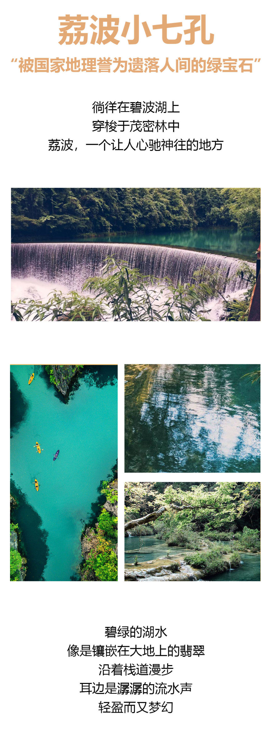 早餐后 乘车前往【荔波小七孔景区】, 荔波小七孔集山、水、洞、林、瀑、湖、石多景观于一体,融雄、奇、险、幽、美为一炉,是喀斯特地貌中无与伦比的美丽景观,人称“超级盆景”、“地球腰带上的绿宝石”。著名景点有【小七孔古桥】、【铜鼓桥】、【卧龙潭】、【拉雅瀑布】、【68级跌水瀑布】、【水上森林】、【翠谷瀑布】、【鸳鸯湖】、【卧龙潭】等。柔美恬静的涵碧潭、飞流泼泻的拉雅瀑布、潭瀑叠错的六十八级跌水瀑布、盘根错节的龟背山、林溪穿插的水上森林、密林镶嵌的鸳鸯湖、幽碧深邃的卧龙潭。