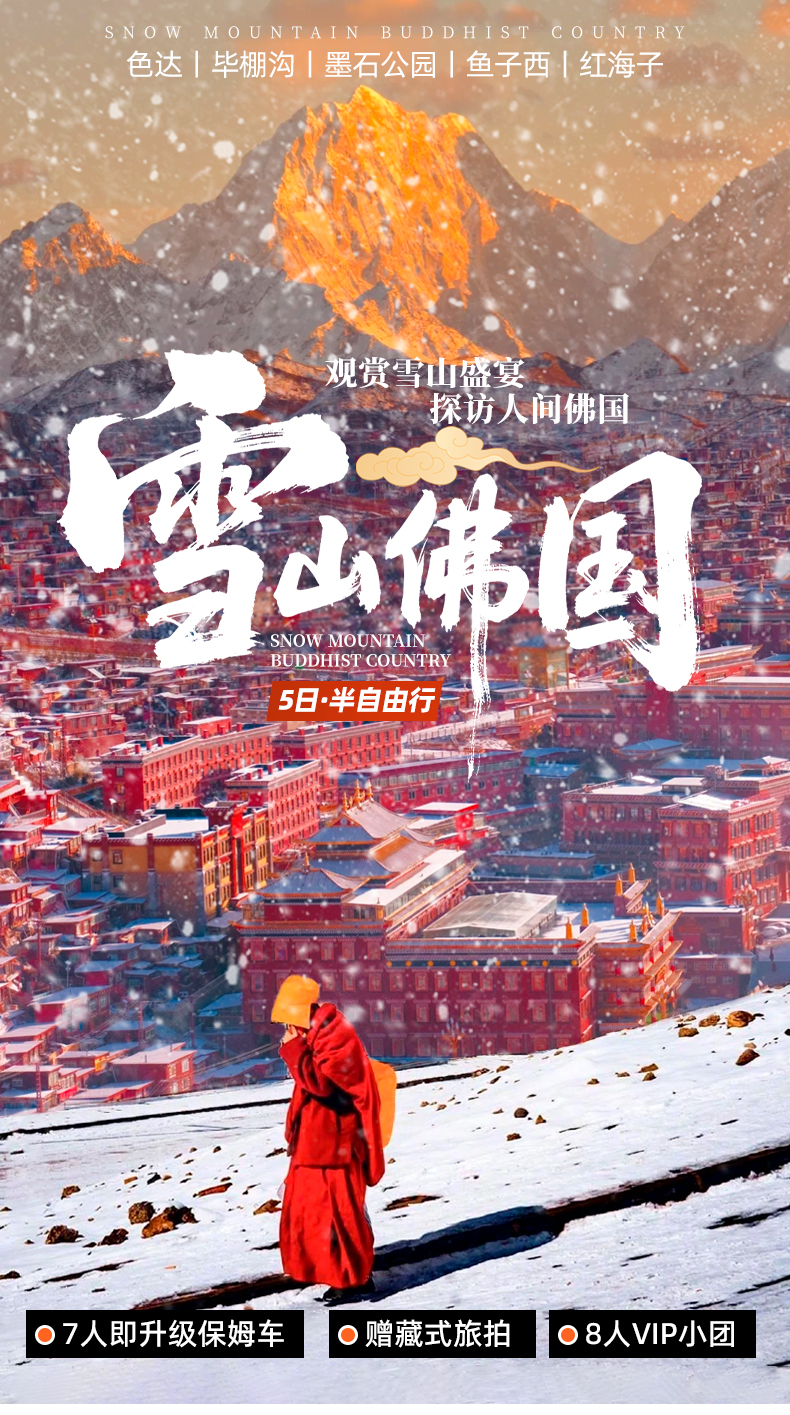 色达+毕棚沟+墨石公园+鱼子西+红海子5日·半自由行