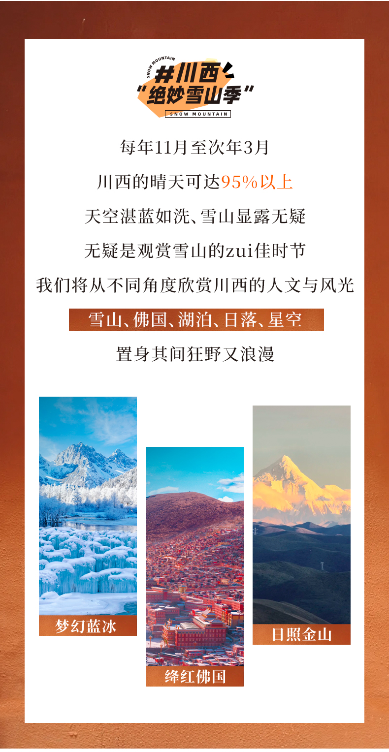 深秋+初冬限定,共20期,每周五成都集合,周六出发,次周二成都结束,节假日略有调整。