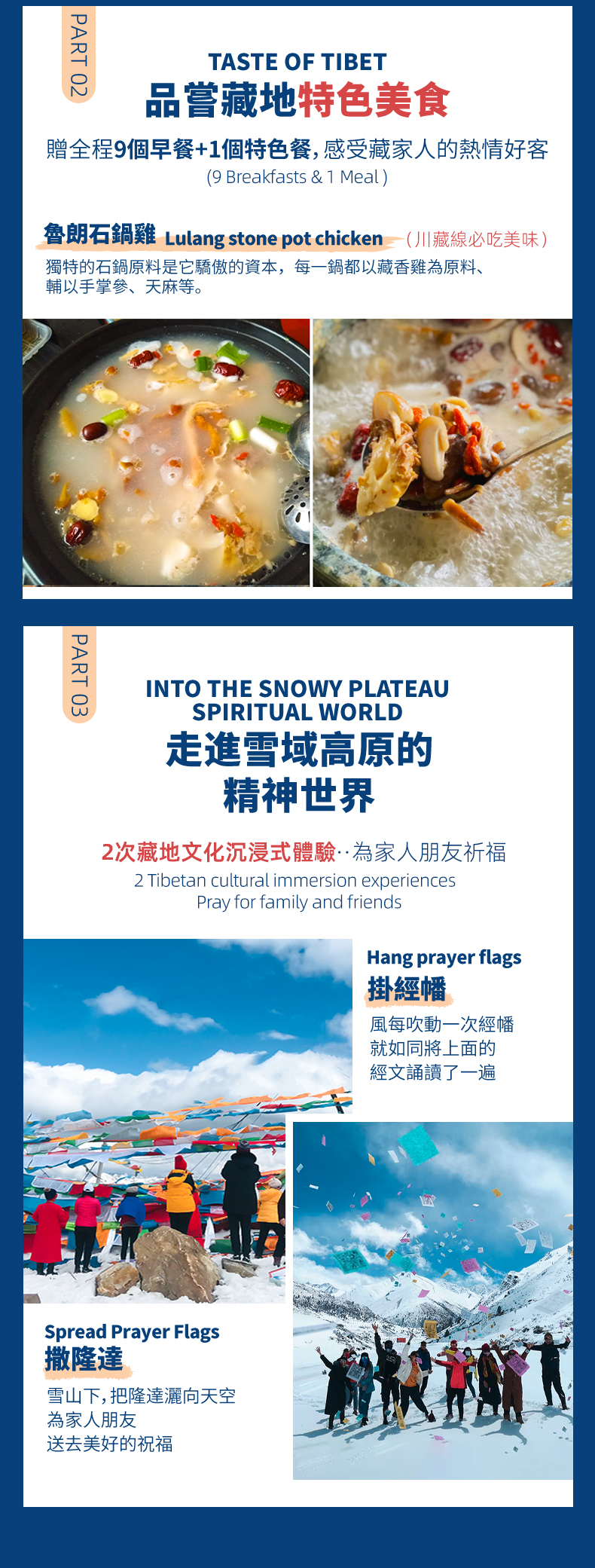 4、用餐:全程9個早餐+1個特色餐(魯朗石鍋雞),如隊員另外點餐,需自己支付費用;