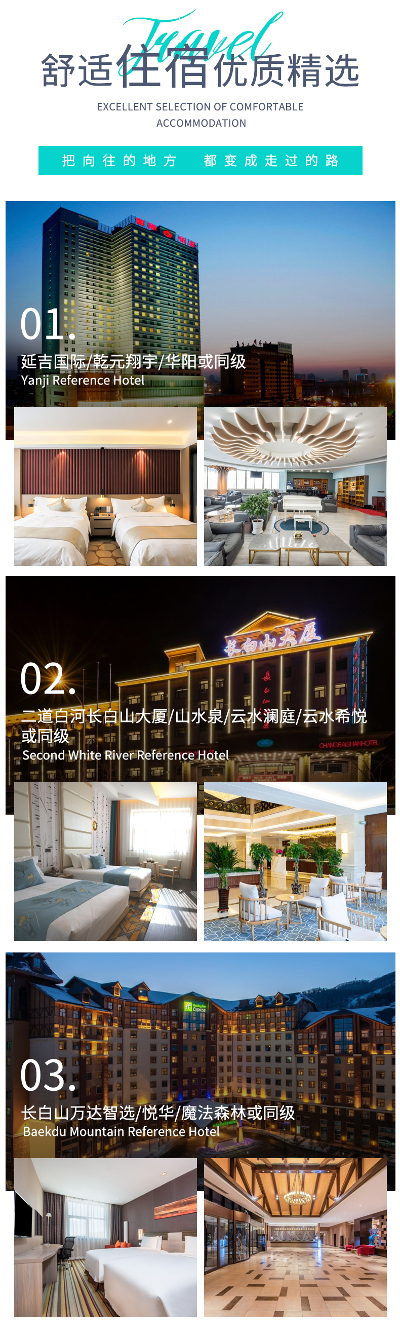 备注:钻级标准参考携程钻级标准,东北经济发展较差,酒店已经是我们精心挑选的,但是和大城市同级别酒店相比各方面略差一些,敬请您谅解;