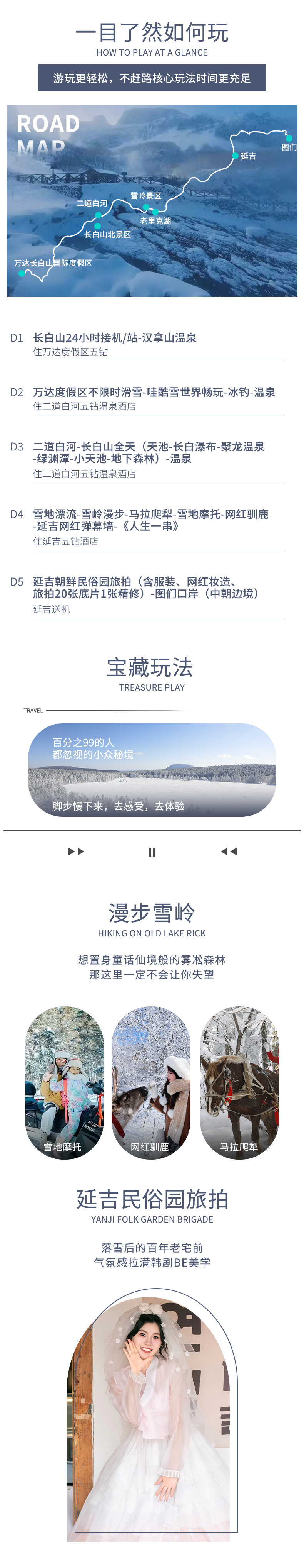 4、门票:雪岭门票、长白山门票+往返环保车+区间车+倒站车、雪地漂流门票、朝鲜民俗园门票;