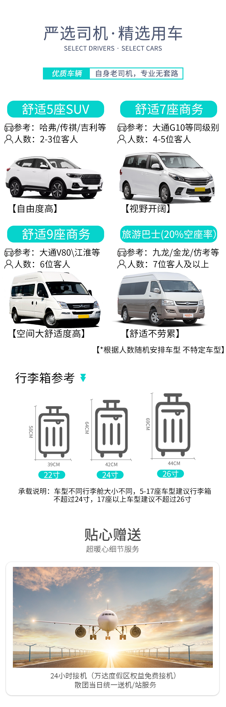 tips:用车仅以客人人数为标准,不包含司机、领队。