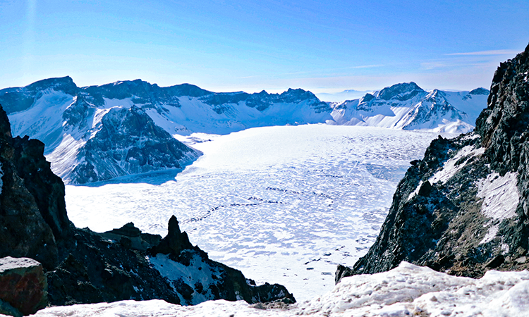 09:30 抵达倒站口,如果天气好大家可以换乘倒站车20分钟抵达天池主峰停车场,爬上5分钟到山顶,俯瞰美丽的天池,自由摄影30分钟。