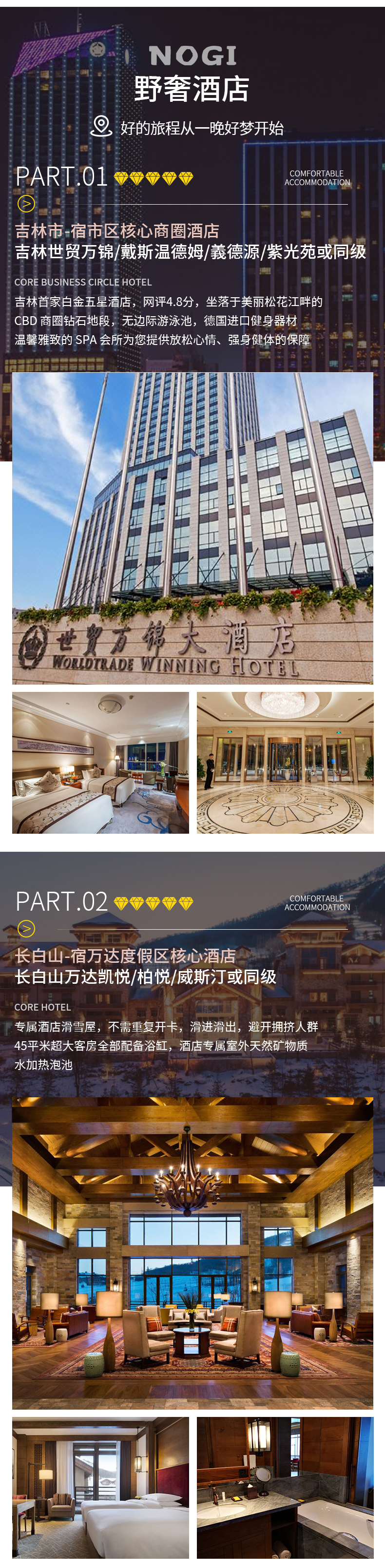 长白山万达凯悦酒店2晚连住或同级;