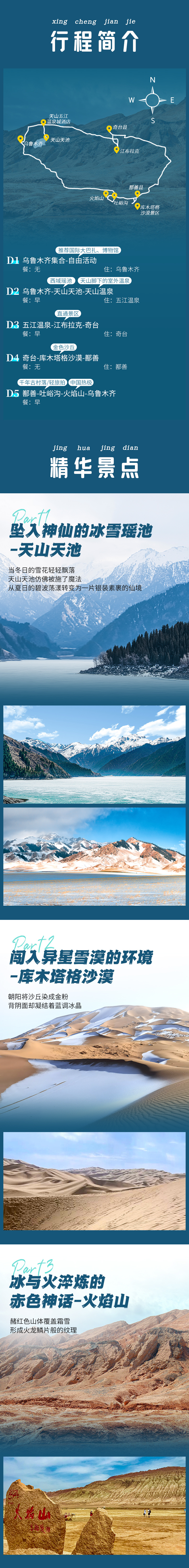4、门票:天山天池+环保车,江布拉克门票+自驾,库木塔格沙漠门票+环保车,吐峪沟门票,火焰山门票;