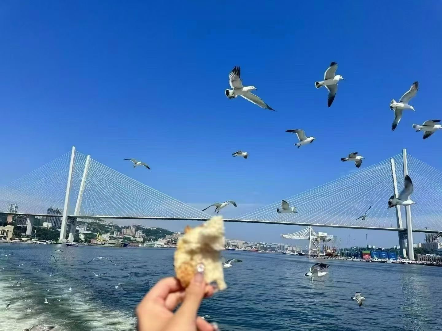 海参崴的市区漫游,是一场山海与人文的邂逅。乘上苏联时期的复古缆车登顶鹰巢山,1962年的铜铃声响中,金角湾大桥与太平洋舰队驻地的壮阔全景尽收眼底,栏杆上的爱情锁还在低语着浪漫誓言。
