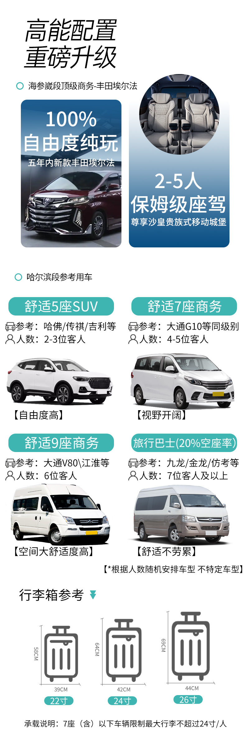 tips:用车仅以客人人数为标准,不包含司机、领队。