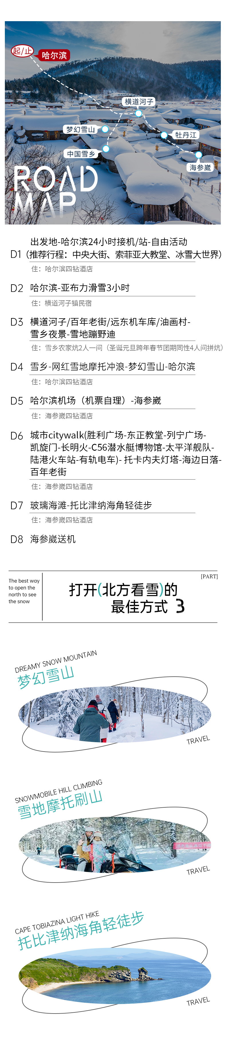 (1.2米以下为儿童,含车位费、赠送项目、保险、电子签证、免门票、含雪乡炕位、免早餐,不含酒店住宿,超高但未满12周岁需补门票90元+早餐费290元,如需占床补酒店2100元/人含早餐)