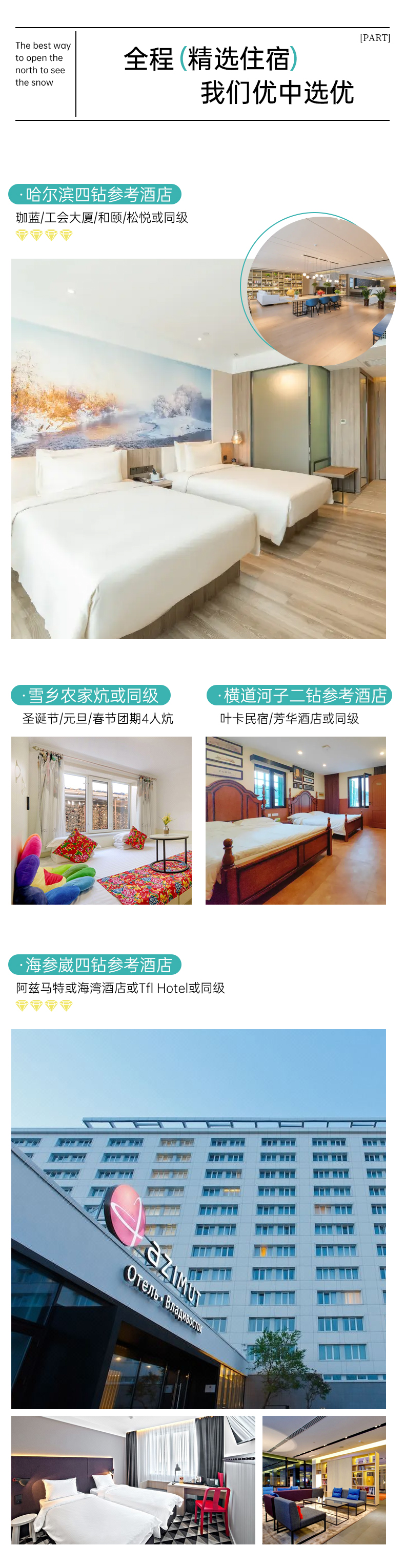 备注:钻级标准参考携程钻级标准,东北经济发展较差,酒店已经是我们精心挑选的,但是和大城市同级别酒店相比各方面略差一些,敬请您谅解;