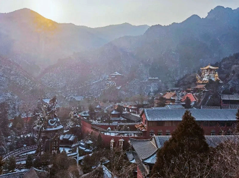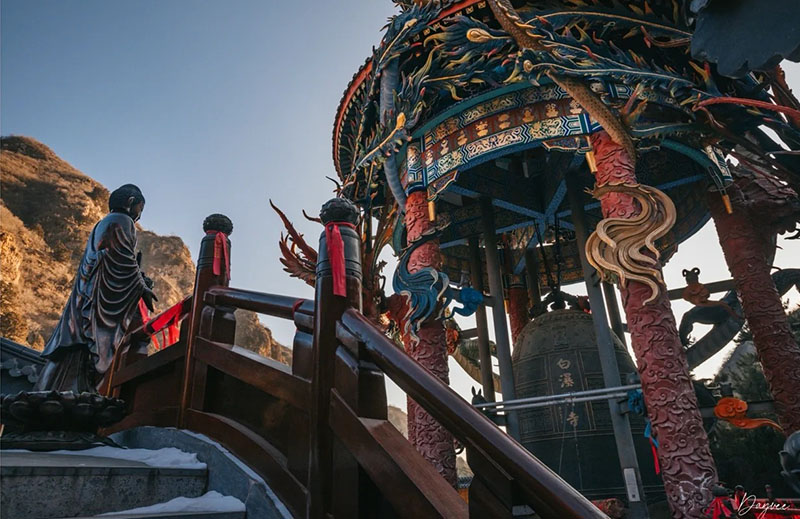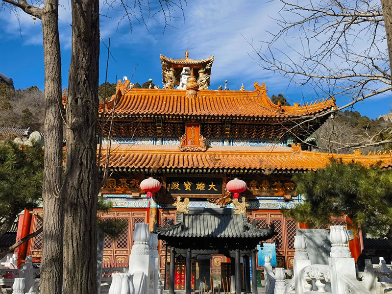 小路延山谷缓缓攀升,先经过一片树林,之后翻过一个小垭口,后面的路程就大都是平缓略有下降的山路,蜿蜒曲折穿行在山谷之中,远远便能看见白瀑寺,游览白瀑寺后,我们前往终点集合。