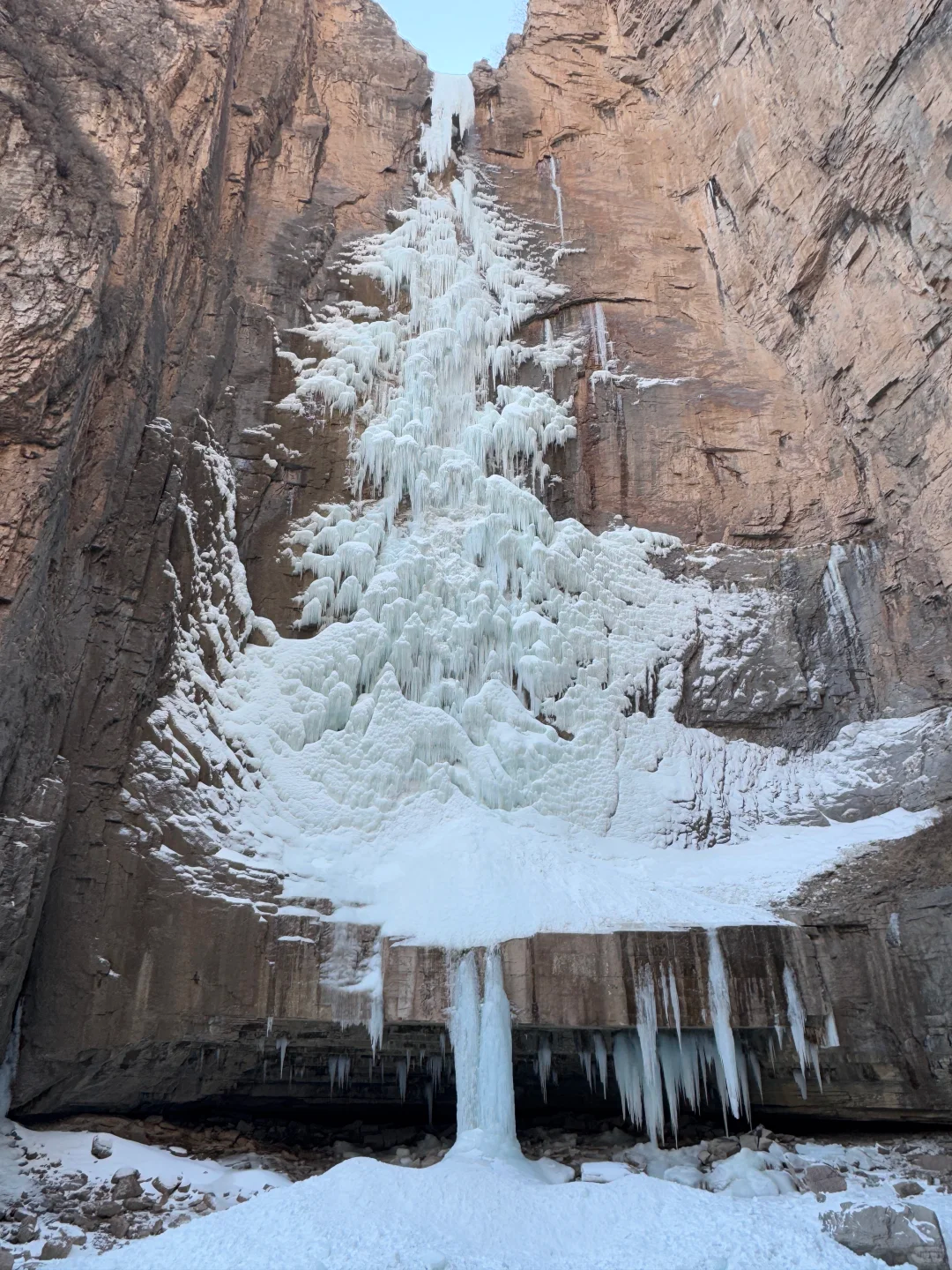 太行古村背靠绝壁,溪流潺潺,恬淡幽然的山村风情,吸引了全国各地的美术院校师生前来写生。 随后,我们进入仙霞谷,沿着峡谷冰挂一路向上,来到峡谷尽头。终于见到天然形成的【中华雪松(圣诞树)】,简直酷毙了!它高达140多米,举世无双。纪录片《寻找圣诞树》在加拿大班夫山地电影节和英国肯道尔山地电影节上放映时,评价其为“这是我见过的最美冰瀑,没有之一”。 加拿大探险家威尔·加德(Will Gadd)更是盛赞:“这是世界最棒的冰壁”。