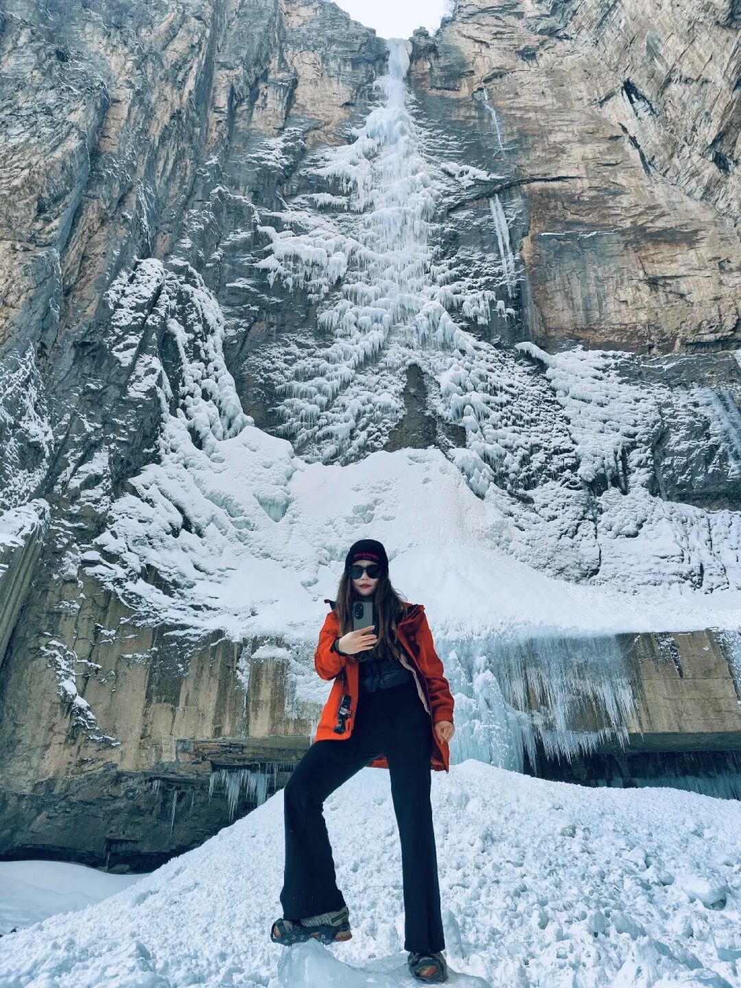 圣诞树冰瀑高达140多米,也叫中华雪松。这是我见过最美的冰瀑,没有之一。”出自攀冰大作电影《寻找圣诞树》。除了那棵神奇的圣诞树冰瀑,还有冰崖、冰挂、冰柱、冰花、冰菇、冰森林、冰台、冰幔.…在冰冷苍茫的大地之间,当你走进去山野,世界立马变得简单纯粹起来,顷刻间,坐世所有繁杂事物抛诸脑后,逍遥于天地之间……