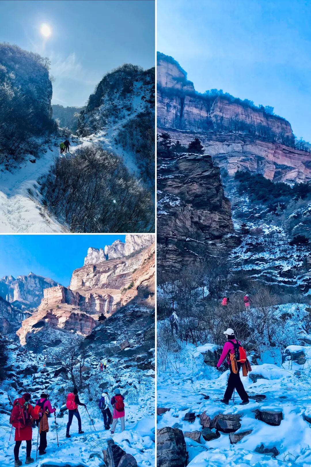 桃花谷俗称“谷中之谷”,又称“爱情谷”,谷内奇峰突兀,峭拔雄壮,传说因三九严寒桃花开而闻名于世。此行数九寒天,虽不见桃花盛开,却有着冰瀑倒垂,冰挂林立,晶莹剔透,婀娜多姿,犹如一朵朵冰花,美不胜收。