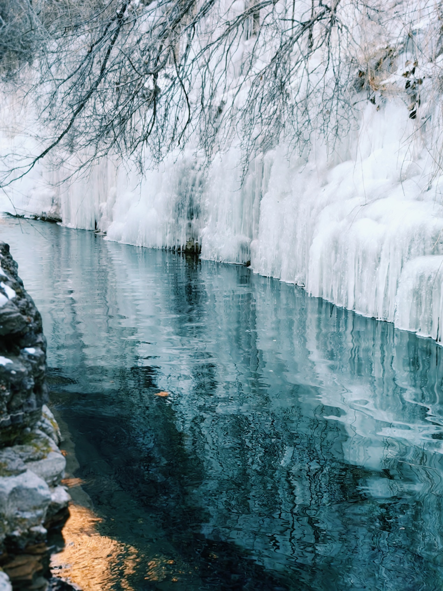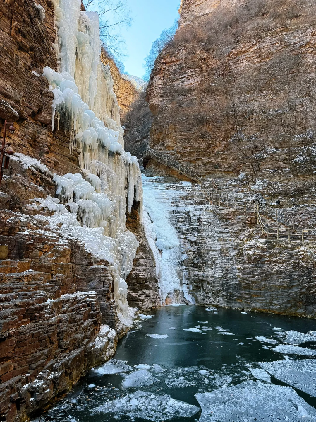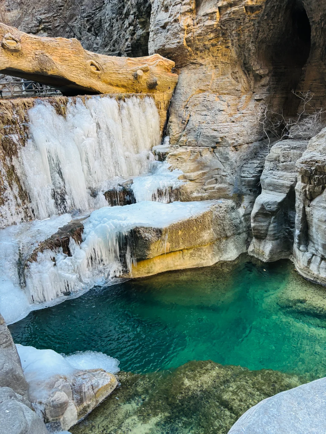 桃花谷,现实版仙侠世界,进桃花谷就被惊艳到了!入口处的花海冰瀑布、打卡墙、花艺装饰,满满的冬日氛围感,随手一拍就是大片!沿着溪流徒步,黄龙潭、飞龙峡、九连瀑……碧水奇石,美得像“北方小九寨” 真的每一步都是风景,完全舍不得走!