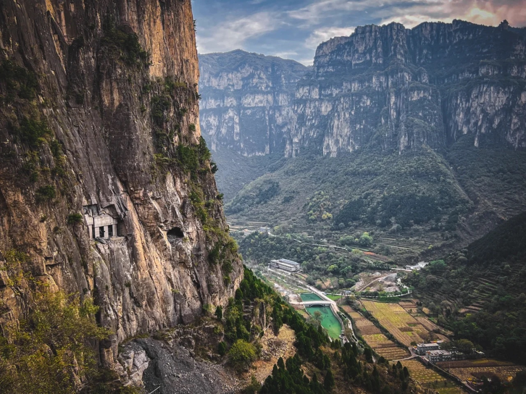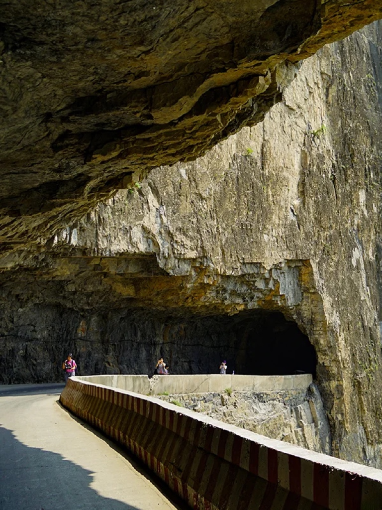 穽底挂壁公路,南太行悬崖山壁间的挂壁公路,从石板岩镇出发-神龙湾挂壁公路观景台,途中穿越神龙湾挂壁公路,这条挂壁公路完全悬停在半山腰,惊险又奇特,难以现象开凿的艰辛,无论身处太行山中还是从洞口远观太行山,都实在太震撼,穿行壁挂公路后到达神龙湾壁挂公路观景台,远观到山壁间有着一个个洞口俯瞰太行山,感受巍巍太行之壮阔,悬崖凿壁之坚毅,真的值得此生必来。