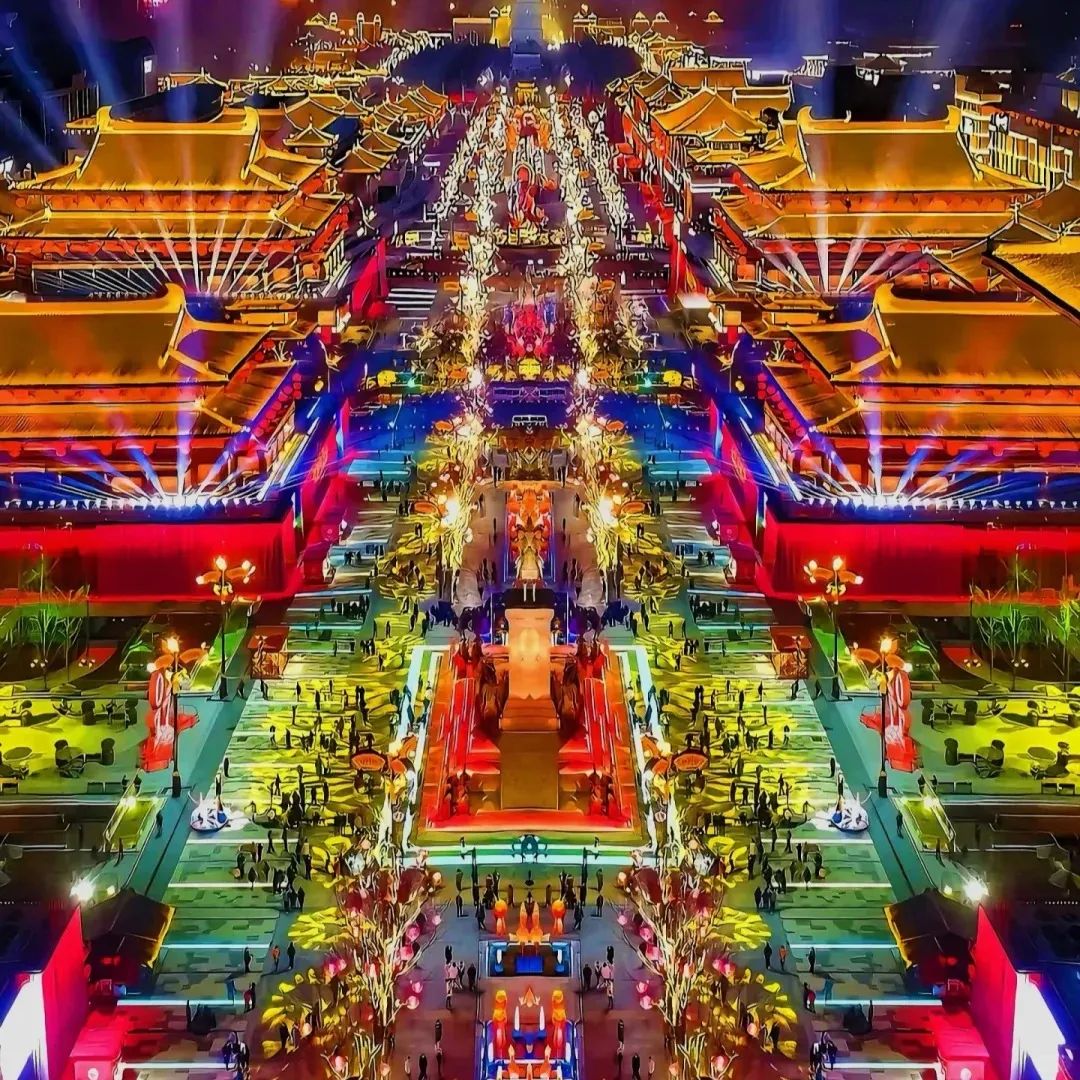 万盏华灯,长安城的盛世烟火,为什么一定要来大唐不夜城?这里是西安夜生活的灵魂,以盛唐文化为背景的沉浸式步行街!霓虹璀璨的仿古建筑、史诗级灯光秀、免费街头表演、汉服小姐姐云集…仿佛一秒穿越回长安城的盛世烟火。免费开放,全天可逛,但夜晚才是它的高光时刻!