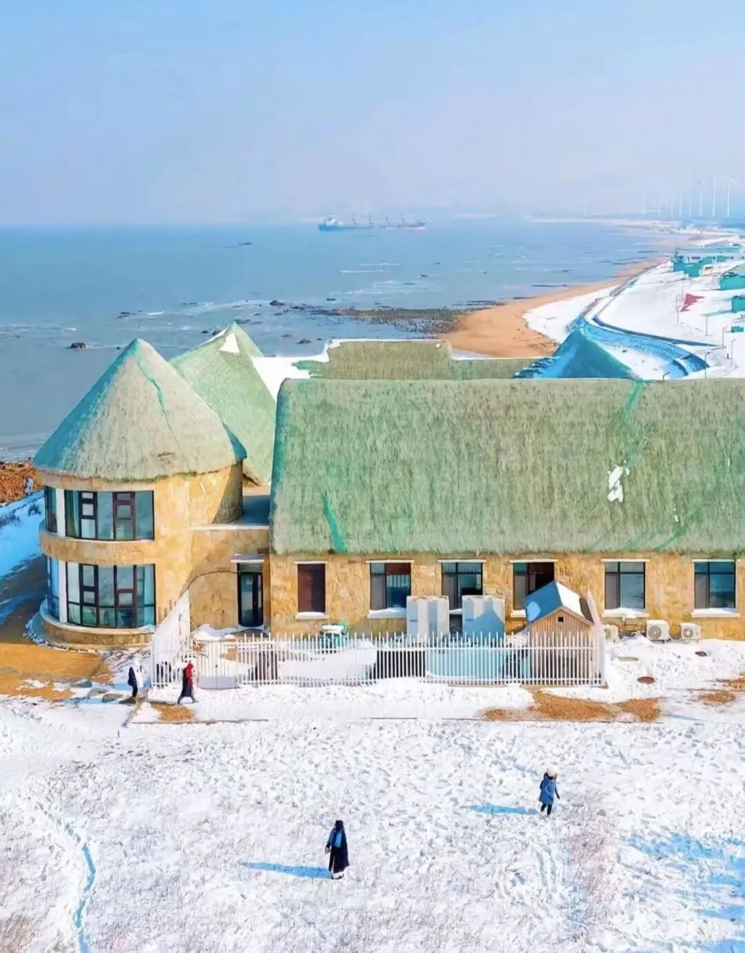 - 之后前往金石湾游览,闯入宫崎骏动漫里的海边小屋,打卡特色海草房。