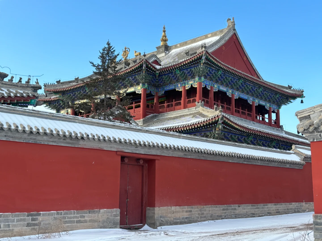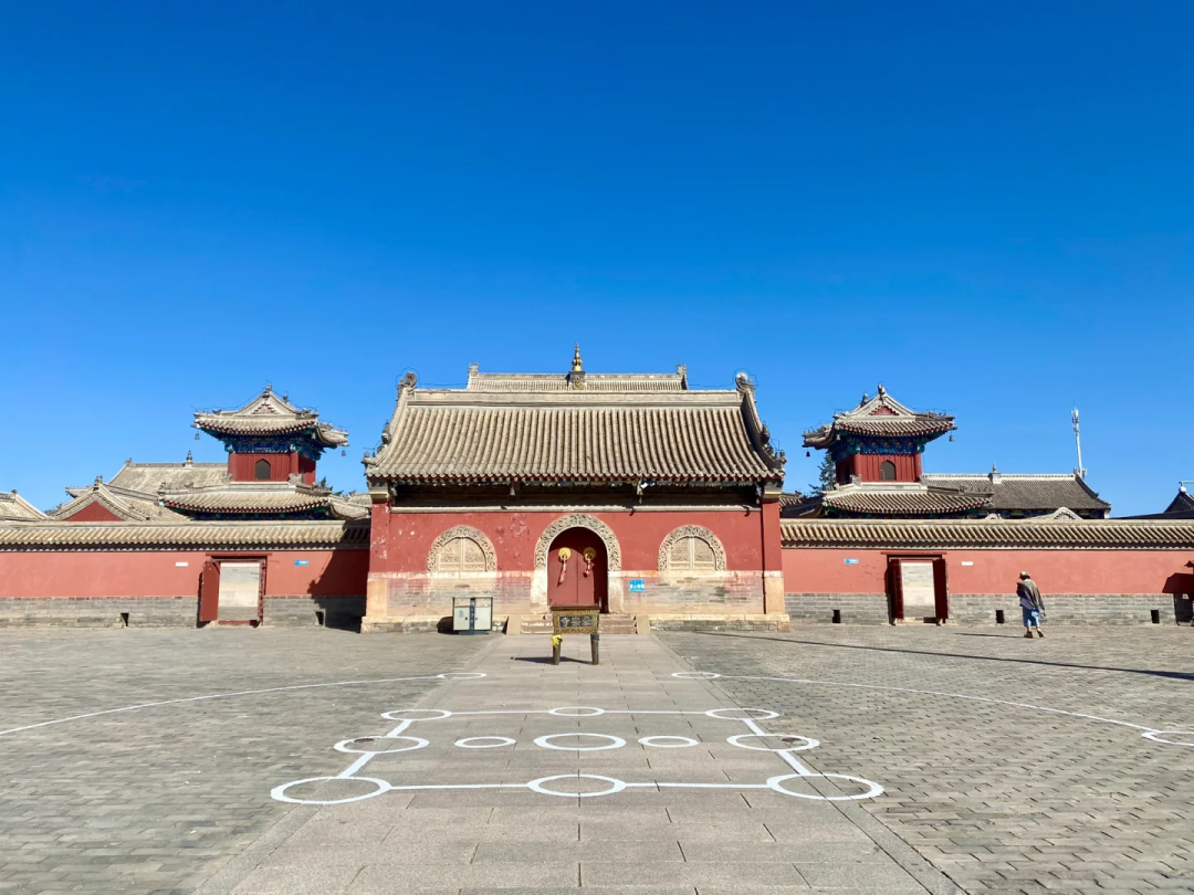 多伦汇宗寺,蒙古地区最早的皇家寺院,位于内蒙古自治区锡林郭勒大草原东南部的多伦县旧城北2公里处。它始建于1691年,由哲布尊丹巴活佛主持设计、建造,1712年竣工,康熙帝赐寺名为“汇宗寺”,亲题匾额并御书汇宗寺碑文和汉白玉碑一对。这座寺院以汉式建筑形制为主,融入蒙古、满、藏艺术元素,整体造型庄严宏丽。