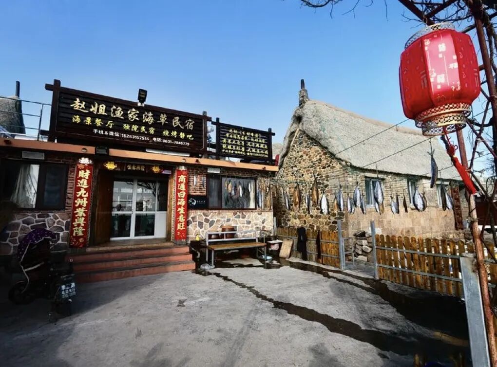 海草房在烟墩角,可以住在有上百年历史的海草房里,细细品味多姿多彩的渔韵民俗。海草房是极具特色的胶东传统民居,当地人就地取材,用海中生长的大叶海苔晒干作为屋顶,建成冬暖夏凉、式样别致的海草房。有的渔民还把鱼网罩于海草顶上