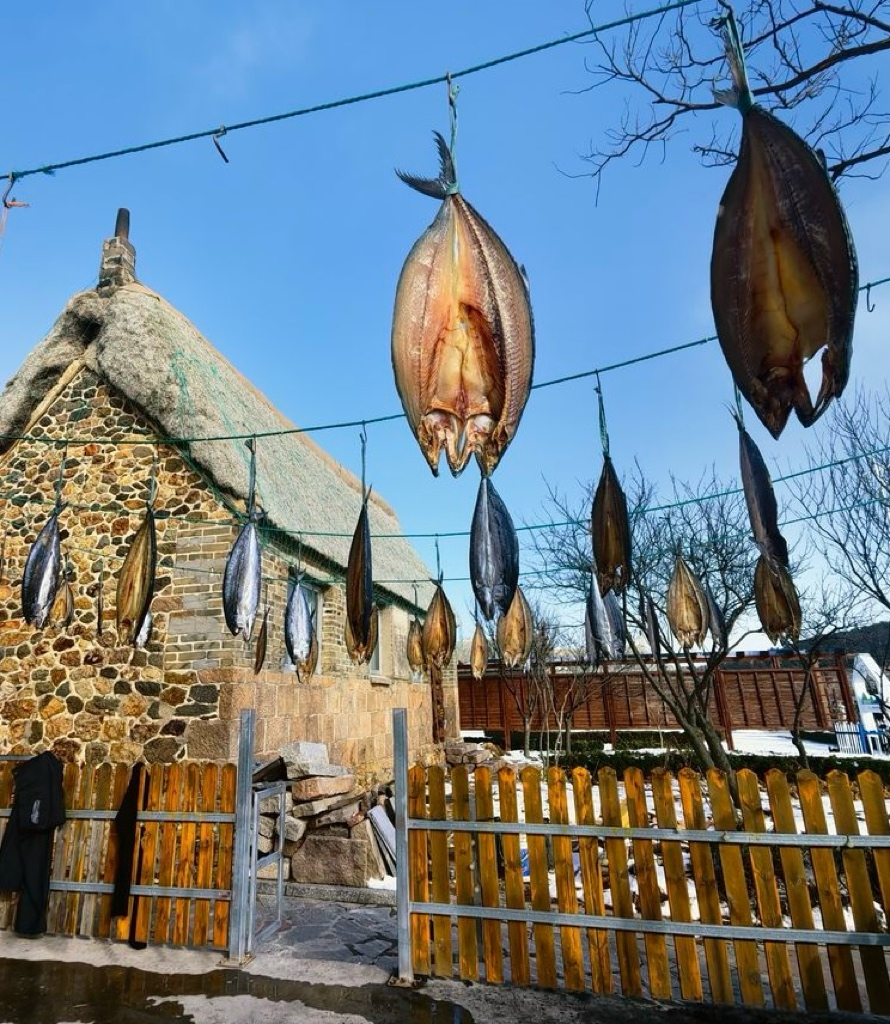 在原始石块或砖石块混合垒起的屋墙上,有着高高隆起的屋脊,屋脊上面是质感蓬松、绷着渔网的奇妙屋顶。这就是极富地方特色的民居——海草房 。当你走进山东省胶东地区的渔村,就可以看到这些以石为墙,海草为顶,外观古朴厚拙,极具地方特色的宛如童话世界中草屋的民居。