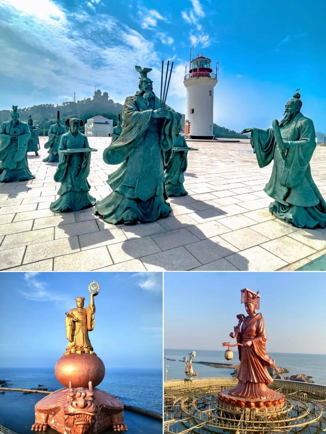到了景区以后,游览号称中国海岸线最东端的中国好望角、始皇庙等景点。成山头又名“天尽头”,三面环海,一面接陆,与韩国隔海相望,因地处成山山脉最东端而得名。曾被《中国国家地理》评为“中国最美的八大海岸”之一,自古就被誉为“太阳启升的地方”。这里是最早看见海上日出的地方,与海南三亚的亚龙湾、台湾基隆的野柳一起名列三甲。站在观海长廊上举目望去,面前是浩瀚大海,将军石、小石林等礁石林立,风光尽收眼底。
