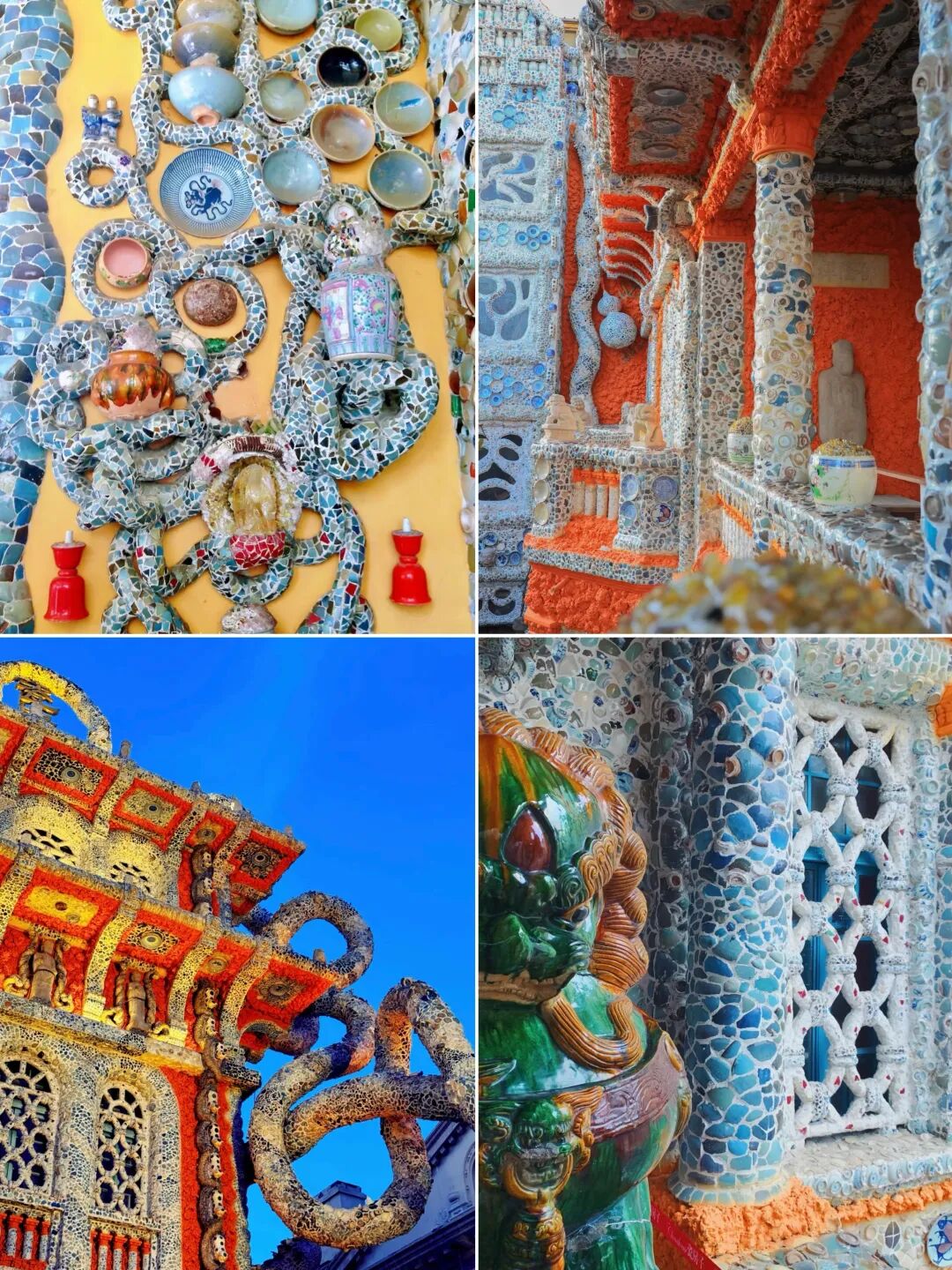 瓷房子是一个用古瓷器修建而成的法式洋楼。整个楼房修建一共用了7亿多片古瓷片,13000多件古瓷瓶、瓷盘、瓷碗,300多尊历代的石雕造像,300多件汉白玉石狮子,300多个 明清时期的瓷猫枕,20 多吨的水晶玛瑙等,它被称为一座价值连城的“中国古瓷博物馆”