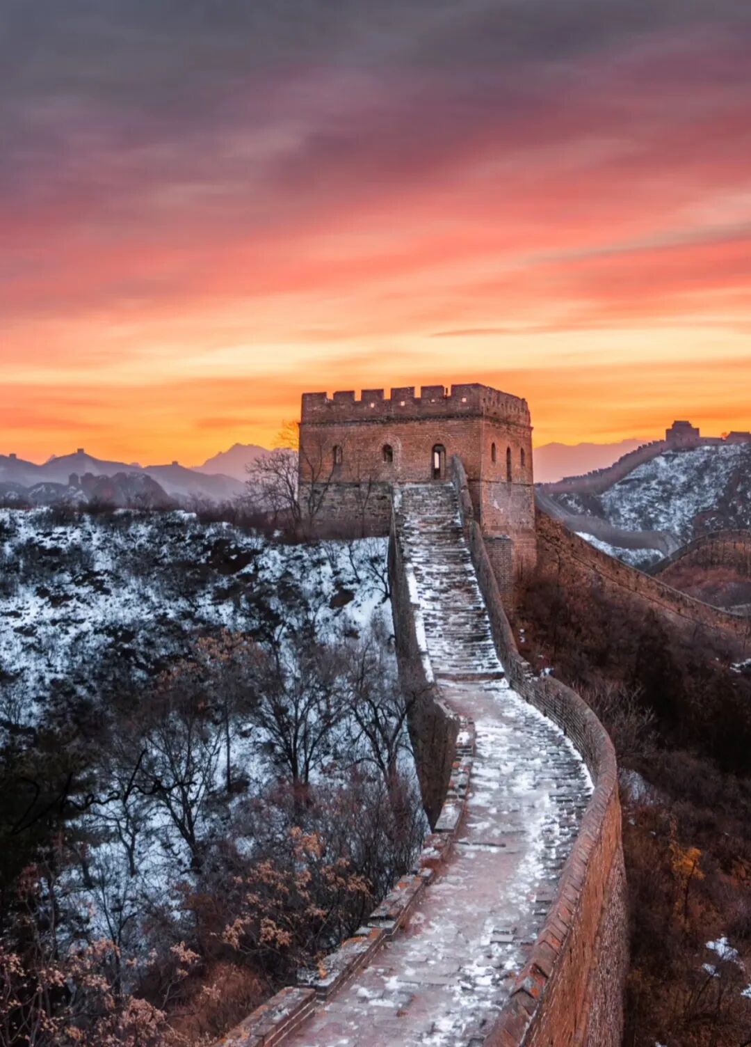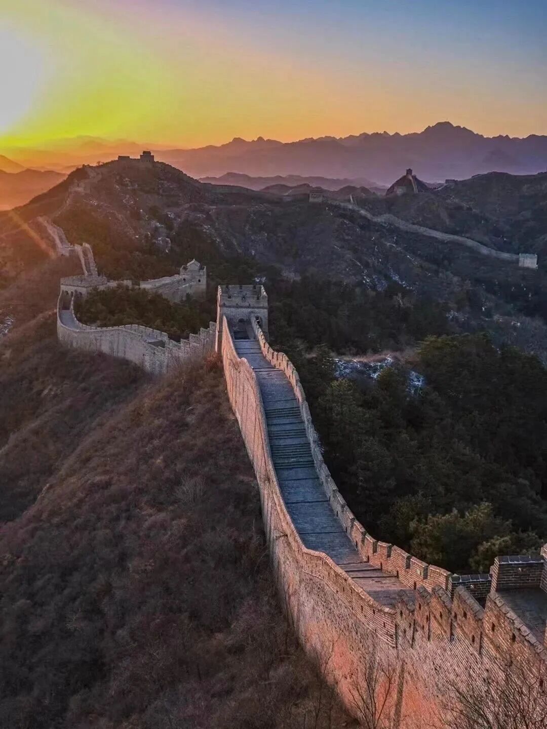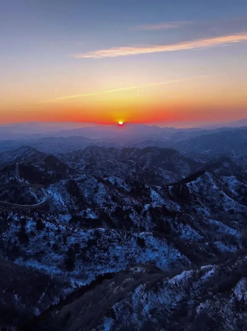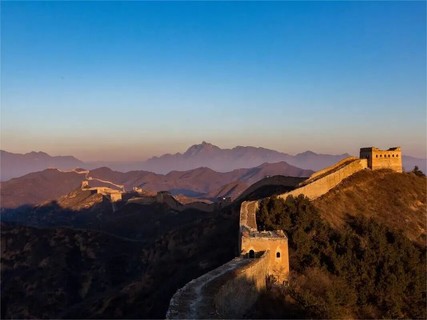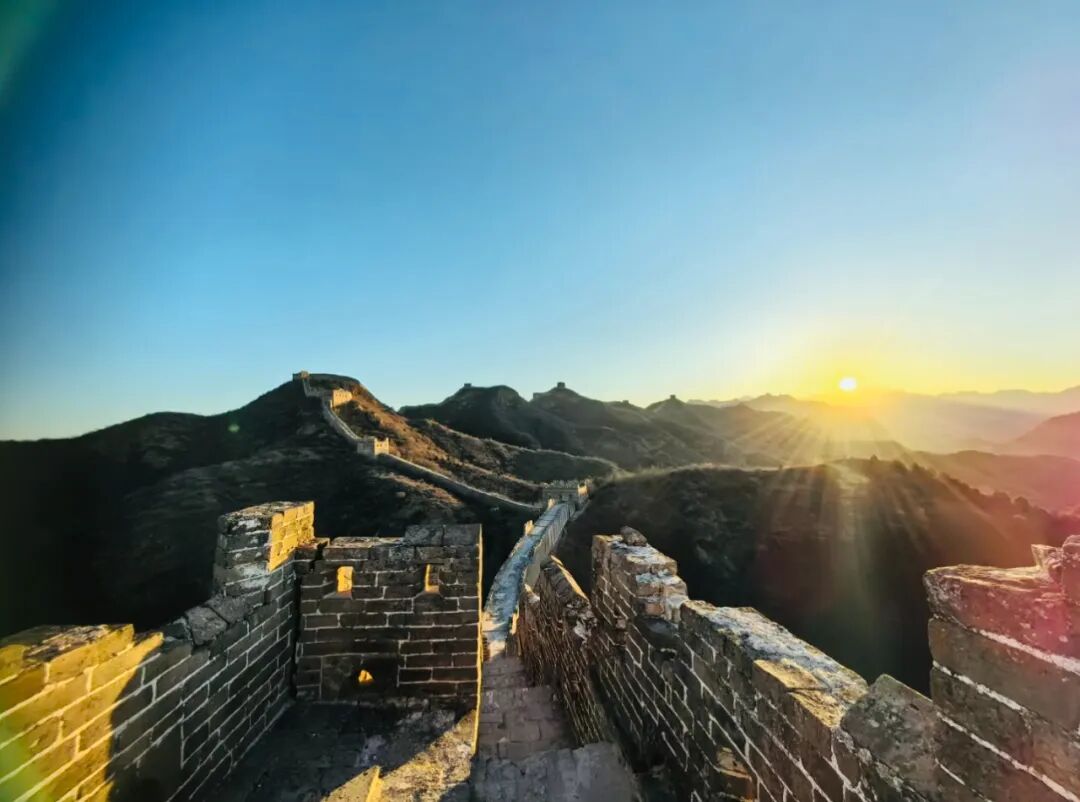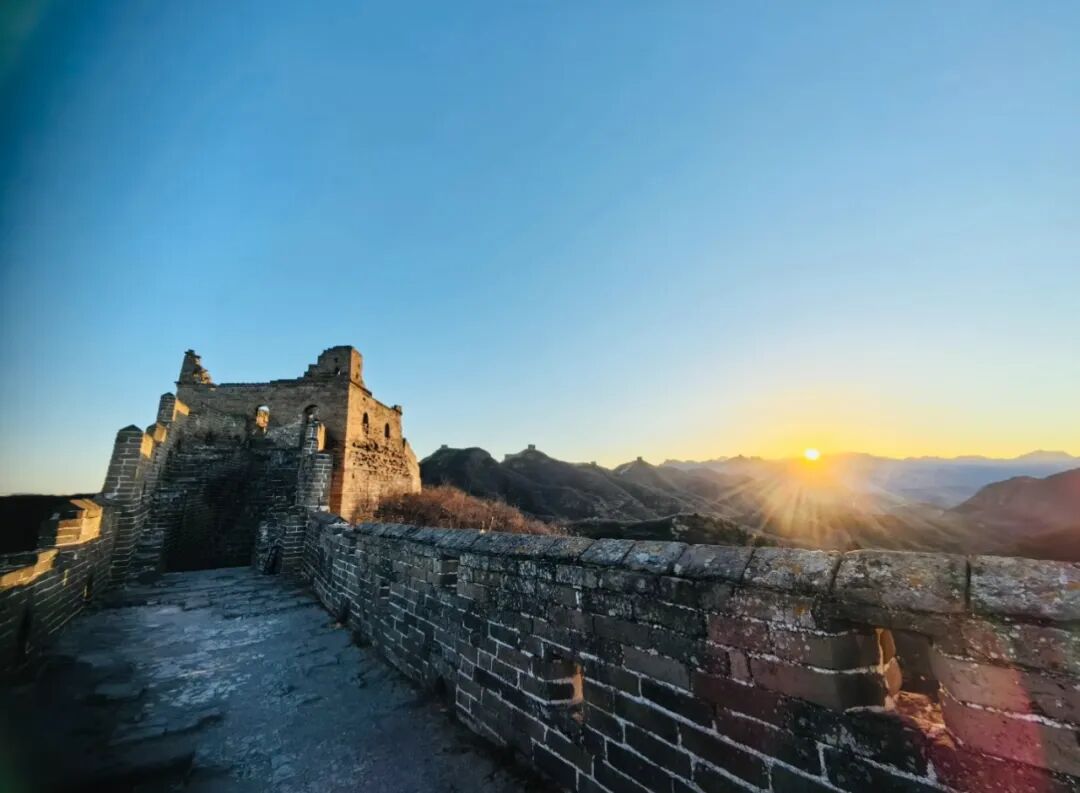 07:20|观日出;当第一缕微光刺破燕山的晨雾,金山岭长城便从沉睡中苏醒,用砖石的脉络,承接天地间最壮丽的开篇。凌晨的风带着山间的清冽,漫过垛口与敌楼,你无需追赶,只需站在城墙之上,看东方的天际从墨蓝渐染成橘粉,再被一轮红日撕开金色的帷幕。阳光爬上烽火台的棱角,将斑驳的城砖镀上暖光,千年的沧桑在这一刻褪去厚重,只剩光影流动间的震撼与温柔。