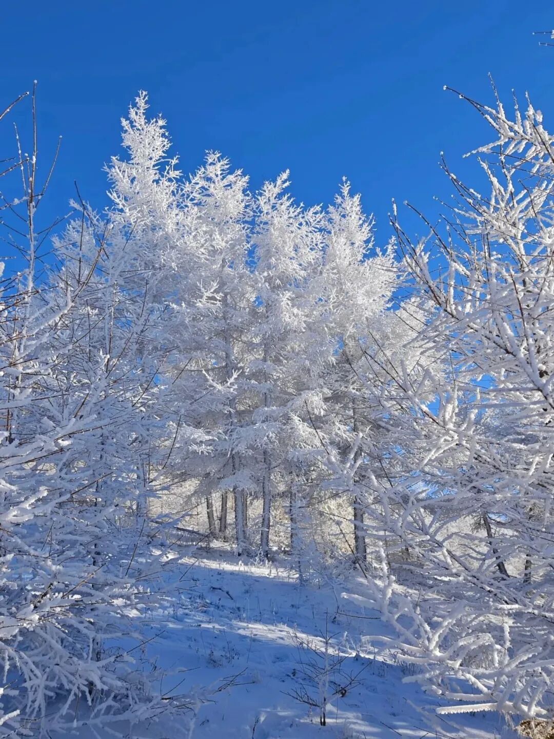 我们将向着这片 “雪域秘境” 进发。徒步途中,成片的桦树林褪去叶片,洁白的枝干在寒风中挺立,像是守护雪山的卫士;脚下的雪地松软而纯净,延伸向远方与蓝天相接,偶尔能看到野兔、松鼠的足迹,为这片寂静的雪原增添了几分生机。