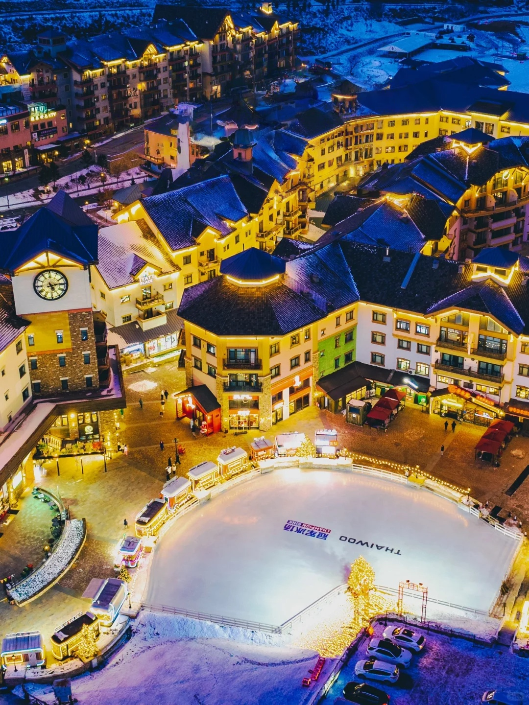 暮色渐浓的太舞小镇正散发着温暖的气息。我们不妨放慢脚步,开启一场雪镇 citywalk:沿着铺满积雪的石板路漫步,看尖顶的教堂、彩色的木屋被彩灯装点得如梦似幻,橱窗里的暖光映着窗外的雪景;