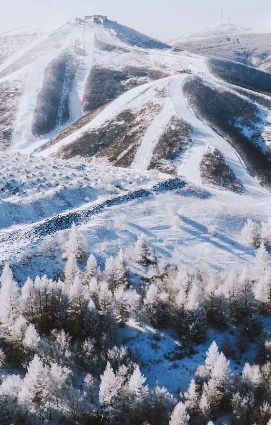 这里最高海拔 2128 米,是坝上草原向塞北山地的过渡带,素有 “塞外第一岭”“京北第一峰” 的称号。不同于太舞小镇的精致,桦皮岭的冬日更显原始与壮阔 —— 这里的森林覆盖率达 80% 以上,冬季气温虽低,却能让人沉浸式感受 “林海雪原” 的苍茫意境。