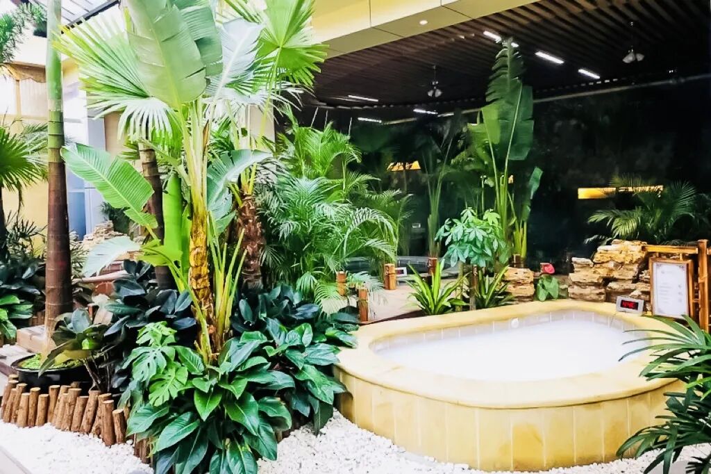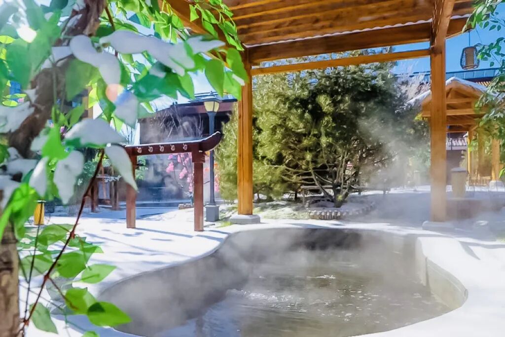 大气沙金色外观、独特的造型设计融于自然,与度假区汉唐风韵建筑群相得益彰。白桦林温泉谷有数十座室内外温泉泡池,还有温泉汤街、贵宾汤屋、游泳戏水、中医理疗、SPA保健等项目。