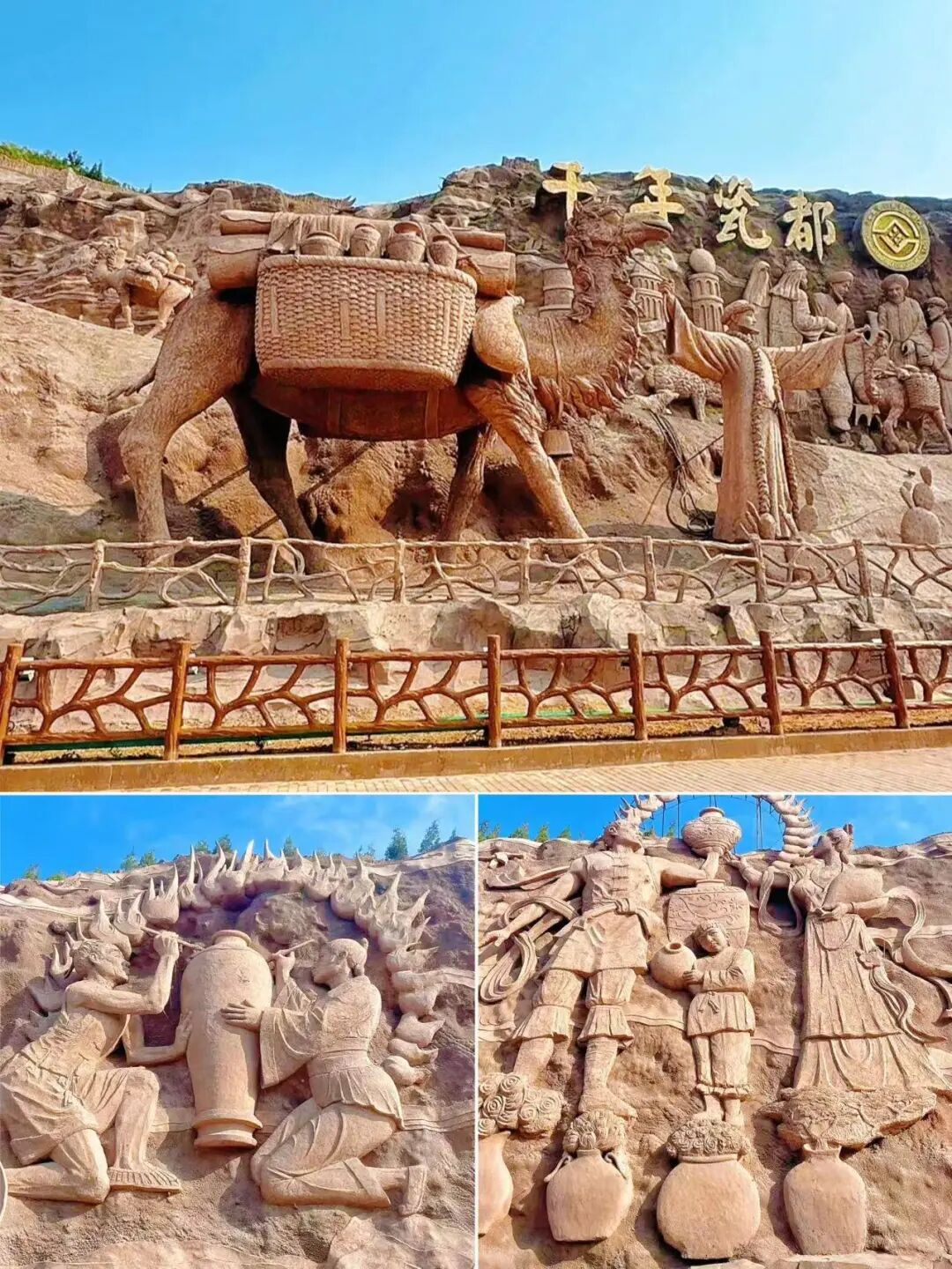 磁州窑浮雕群一个建在高速路上的近千米的山体大型雕塑群,现场非常的震撼,雕塑展现了磁州窑的生产过程,及古丝绸之路的场景,壁画栩栩如生~峰峰是磁州窑的发祥地也叫彭城,享有“南有景德,北有彭城”的美誉;