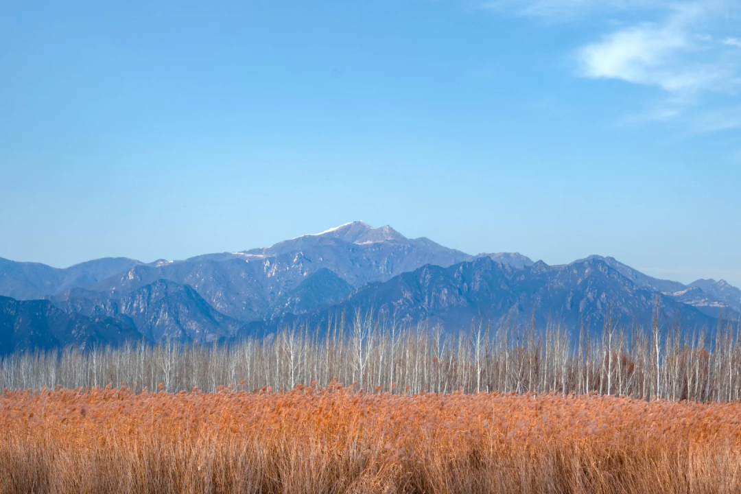 湖面湛蓝得像块宝石,远处海坨山覆着薄雪,阳光洒在雪道上化作“京郊日照雪山”,随手一拍都是无滤镜大片。沿着5公里环湖路漫步,脚下是松软的落叶,耳边是风声与候鸟低鸣,连片的芦苇荡掀起金色波浪,毛茸茸的穗子在风里摇晃,自带电影感柔光滤镜