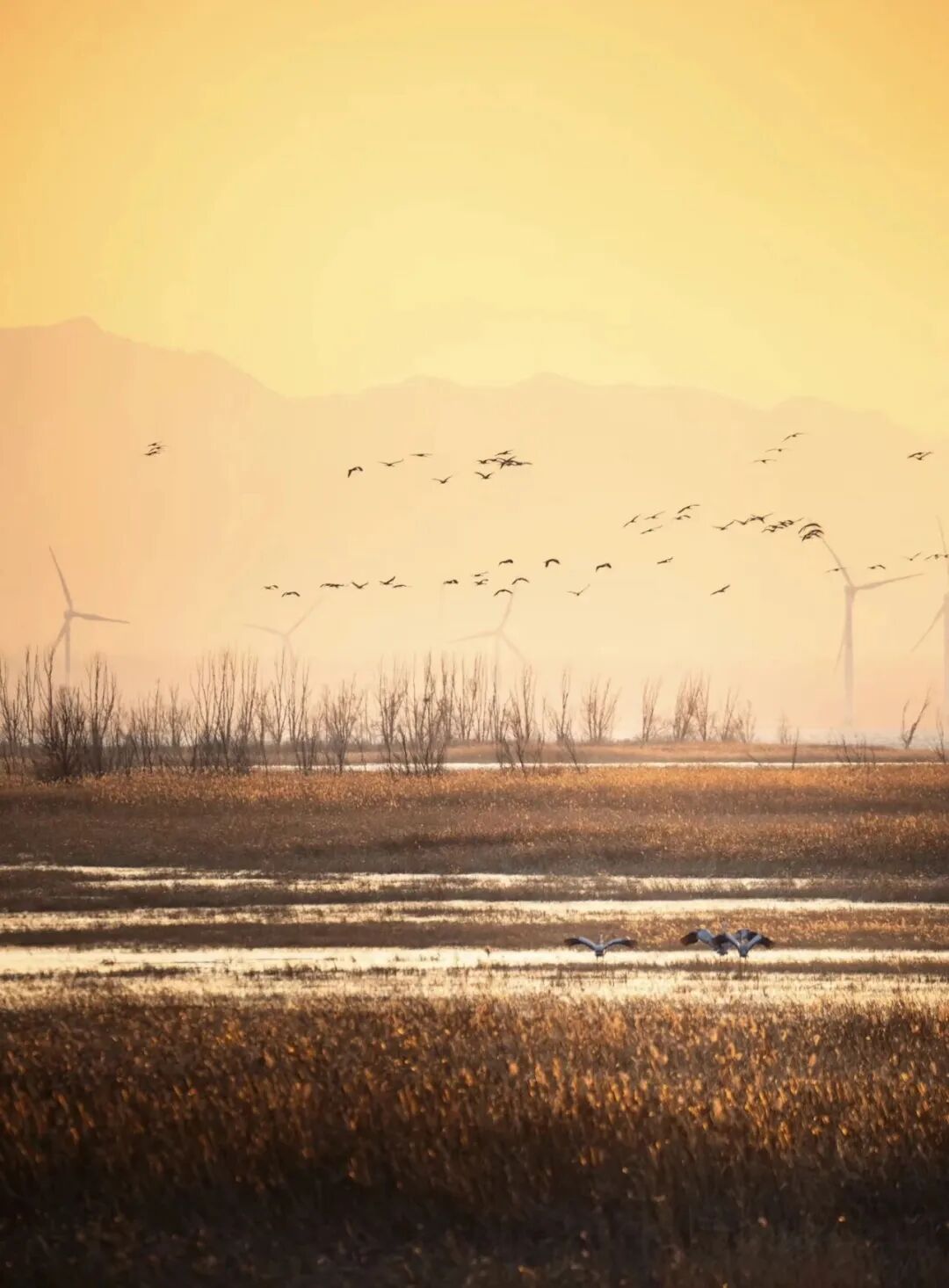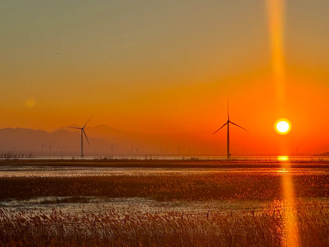 选择在芦苇荡中间的栈道上拍照,以芦苇和夕阳为背景,分分钟拍出大片。也可以蹲下来,用低角度拍摄芦苇和落日的倒影,超级有意境。