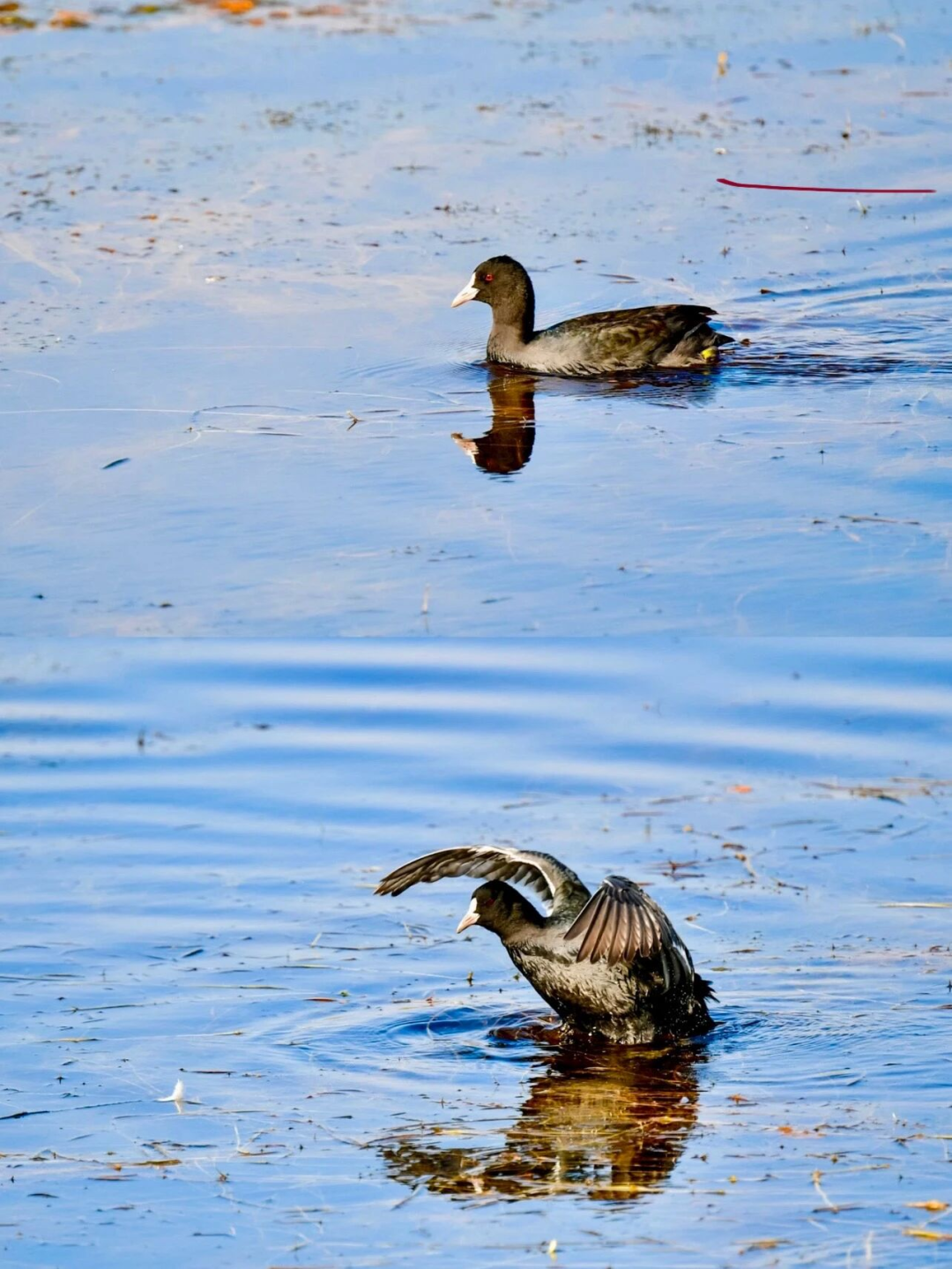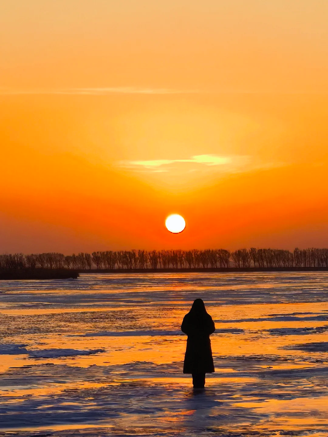 野鸭湖的绝美日落大片,太阳缓缓沉下时,整片湖面被染成了金红色,像洒满碎金的绸缎一样耀眼。湖里的栈道被淹到一半,只能在岸边走走,也因此看到了更多倒影与色彩的细节。