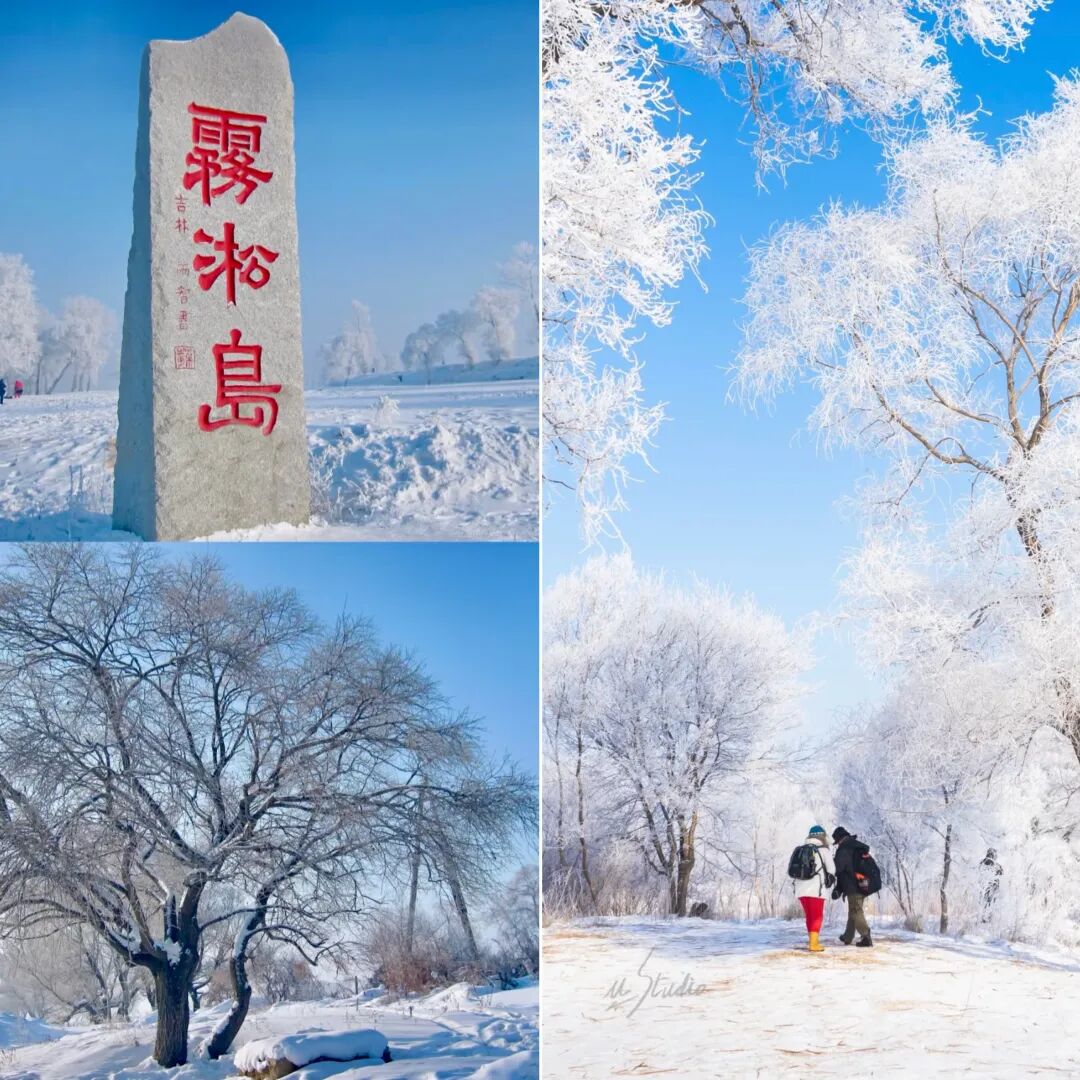雾松岛是松花江上冲击而成的江中小岛,因雾凇多且美丽而得名,常能拍出风光大片,受到大批摄影爱好者的追捧。每到寒冬,不冻的江水中升腾的水雾遇冷,在树上凝结为霜花,从远处看正是传说中的玉树琼花,美不胜言。