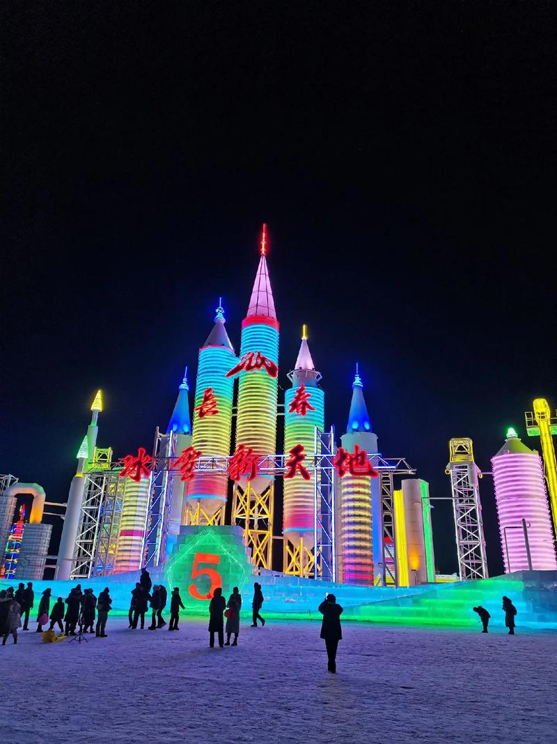长春冰雪新天地,地处长春莲花山生态旅游度假区,是一座集冰雪观光、冰雪游乐、冰雪娱乐、冰雪研学、冰雪科技为一体的季节性冰雪主题乐园。晚来临以后的长春冰雪新天地流光溢彩,一座座冰雪雕塑美轮美奂。