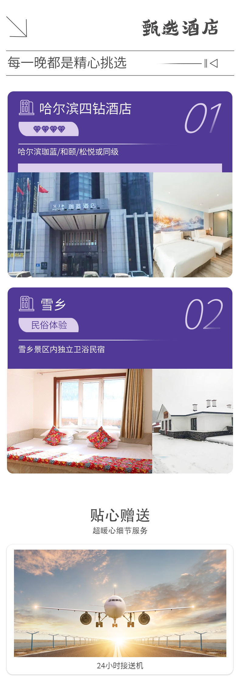 三晚哈尔滨四钻酒店或同级;(参考哈尔滨珈蓝或同级)