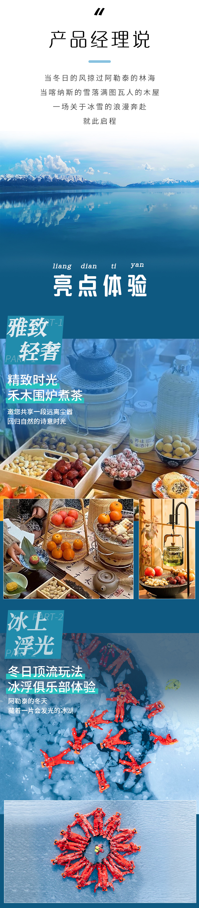 今天一天在禾木村深度游玩,第一站安排了骑马往返禾木观景台,风呼呼吹过耳边的感觉都是自由的,骑马后来到客栈【围炉煮茶】在现代生活中,体验一处返璞归真的氛围,忘却忧愁烦恼,“偷得浮生半日闲”。随后带大家走进禾木【图瓦家访】通过家访的方式深度了解图瓦这个民族。晚上为大家安排了雪景火锅哦。
