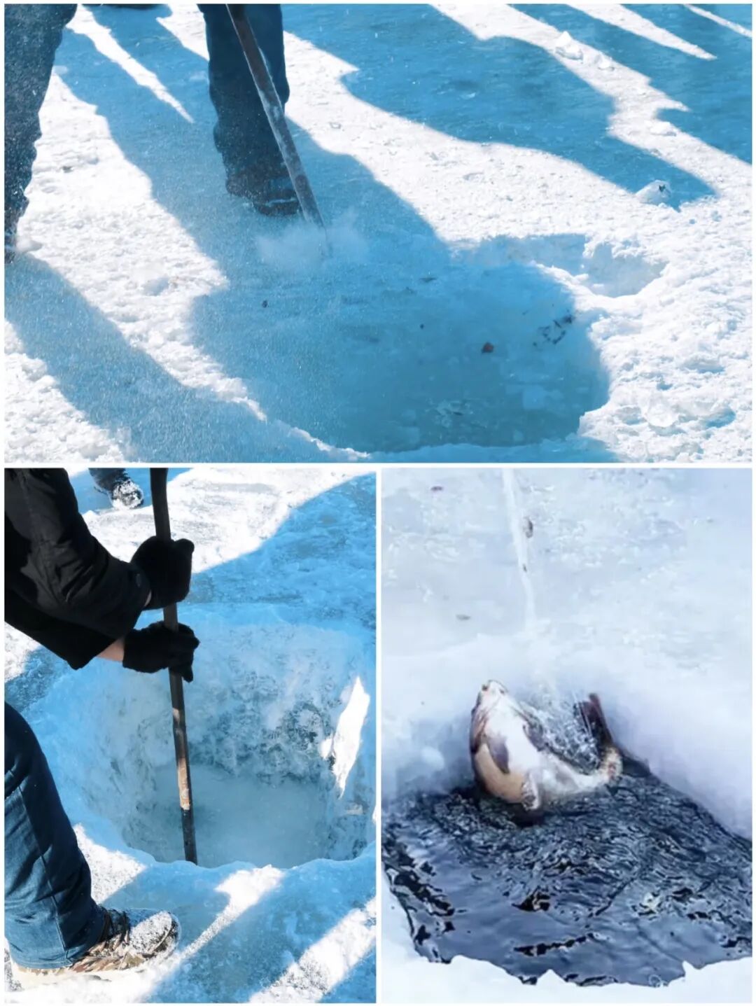 多伦湖的冬捕延续了古老的千年渔猎文化,早在一千多年前的辽金时代,这里就已盛行冬捕,直到今天,冰上渔猎仍然是当地传统的生产习俗。渔民们打眼、破冰、下网,水下走杆,一招一式按照传统步骤逐一还原冬捕过程。