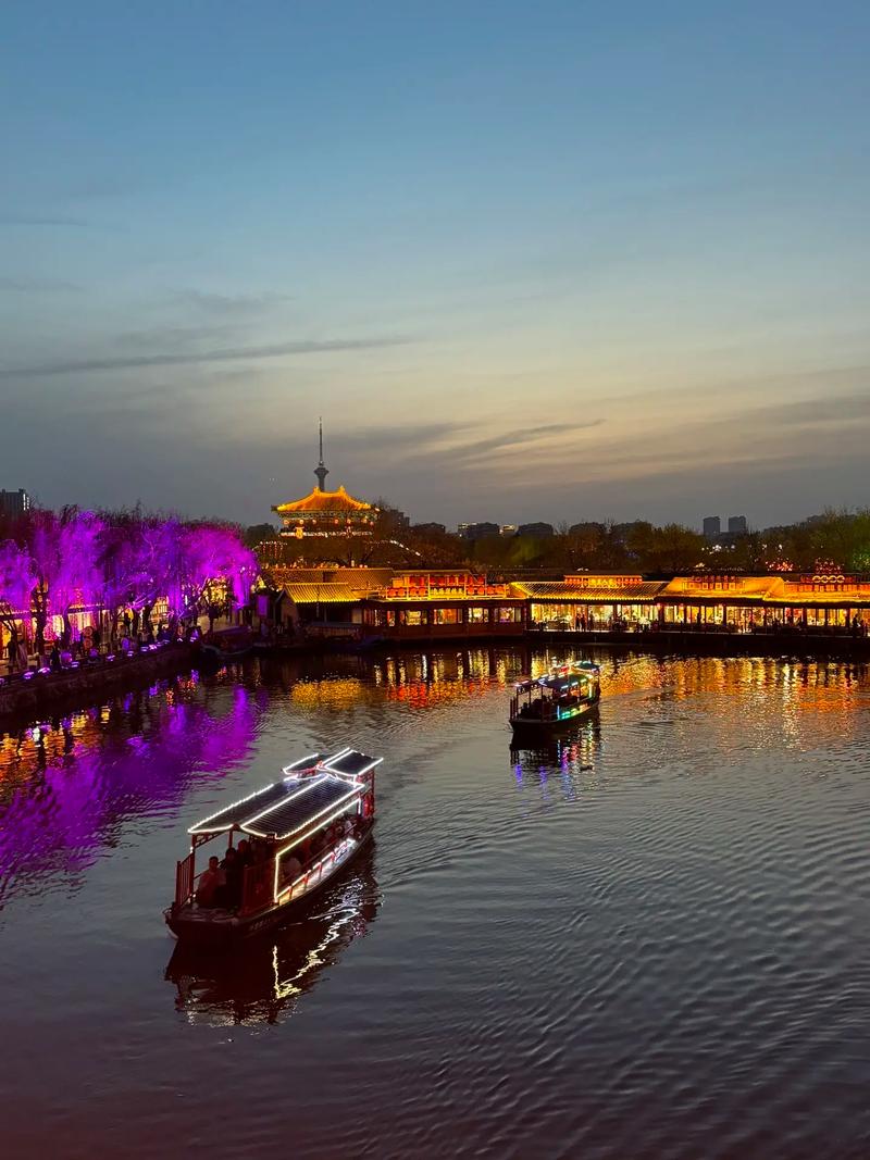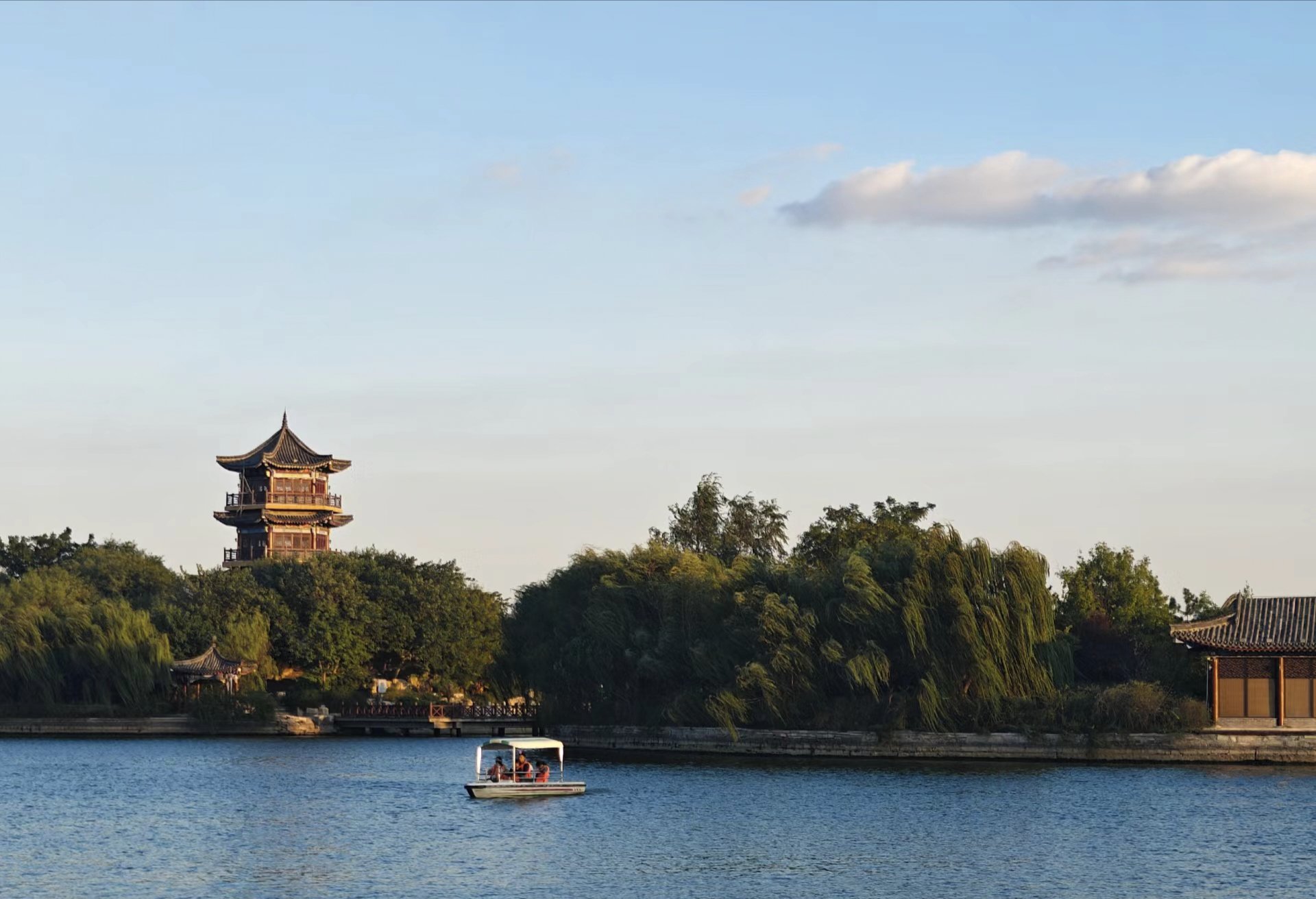 东昌湖与杭州西湖、南京玄武湖并称“全国三支市内名湖”,素有“南有西湖,北有东昌”之称,中华水上古城是一座飘在水上的千年古城,四周环水,大家可自由寻觅小吃、逛湖景、赏夜色,你也不防骑上脚踏车,来个环湖夜骑,更是一种享受。这里灯色夜秀异常美丽。玩累了自行返回酒店休息。我们住宿距离东昌湖很近,打车骑车都很方便。