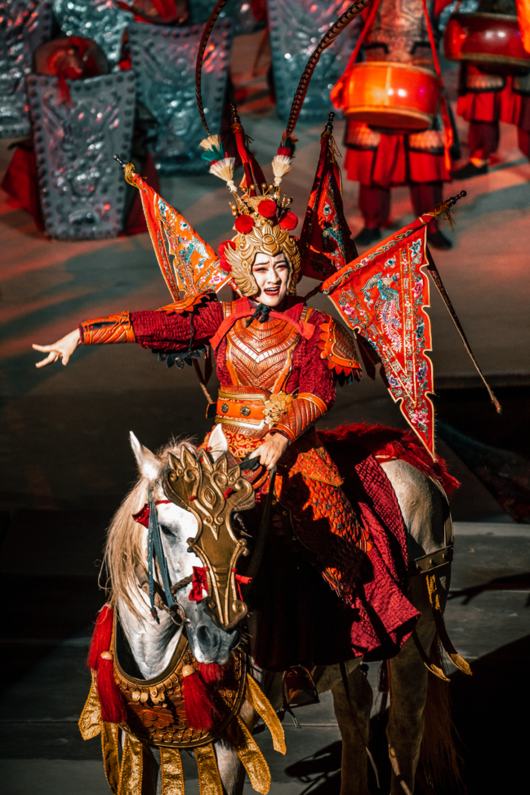 由几首宋词串联而成,演绎了北宋的兴衰和市井文化。整部演出既有气势恢宏的水战,也有温婉可人的词人悲情。最为印象深刻的是,穆桂英骑着白马在舞台中央铿锵的唱着古词,让人有热血沸腾,洒血沙场的壮烈。
